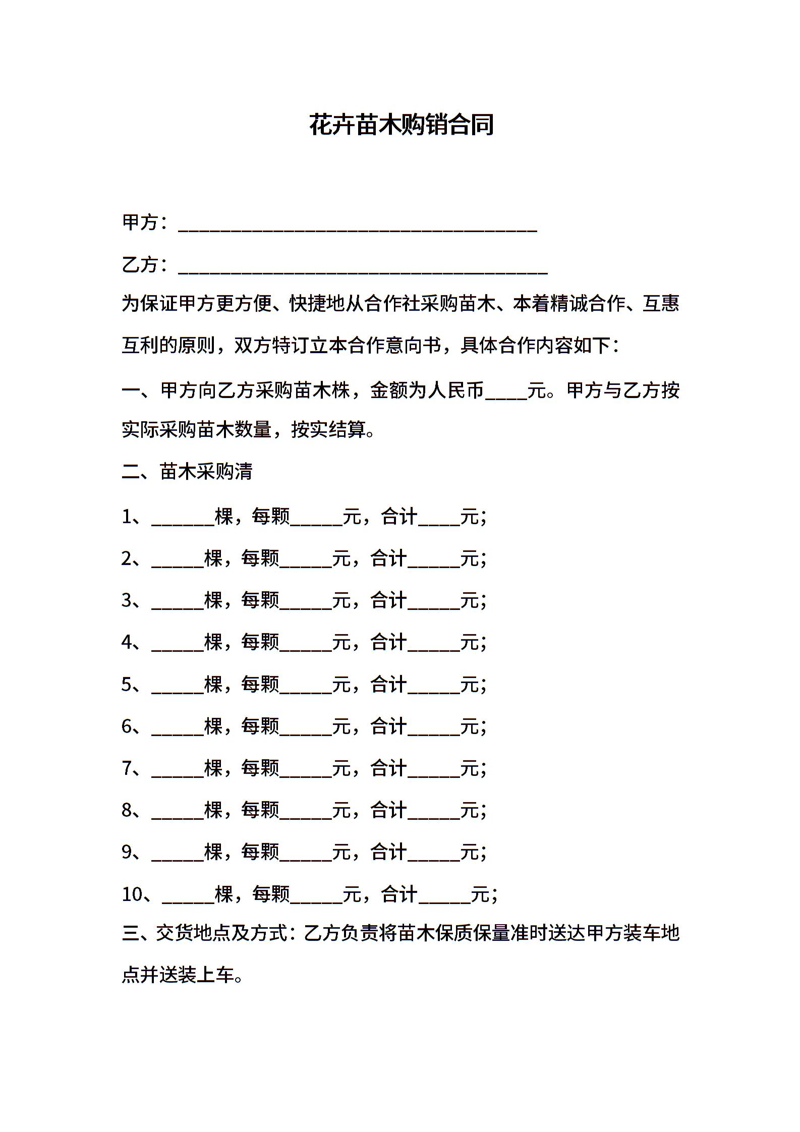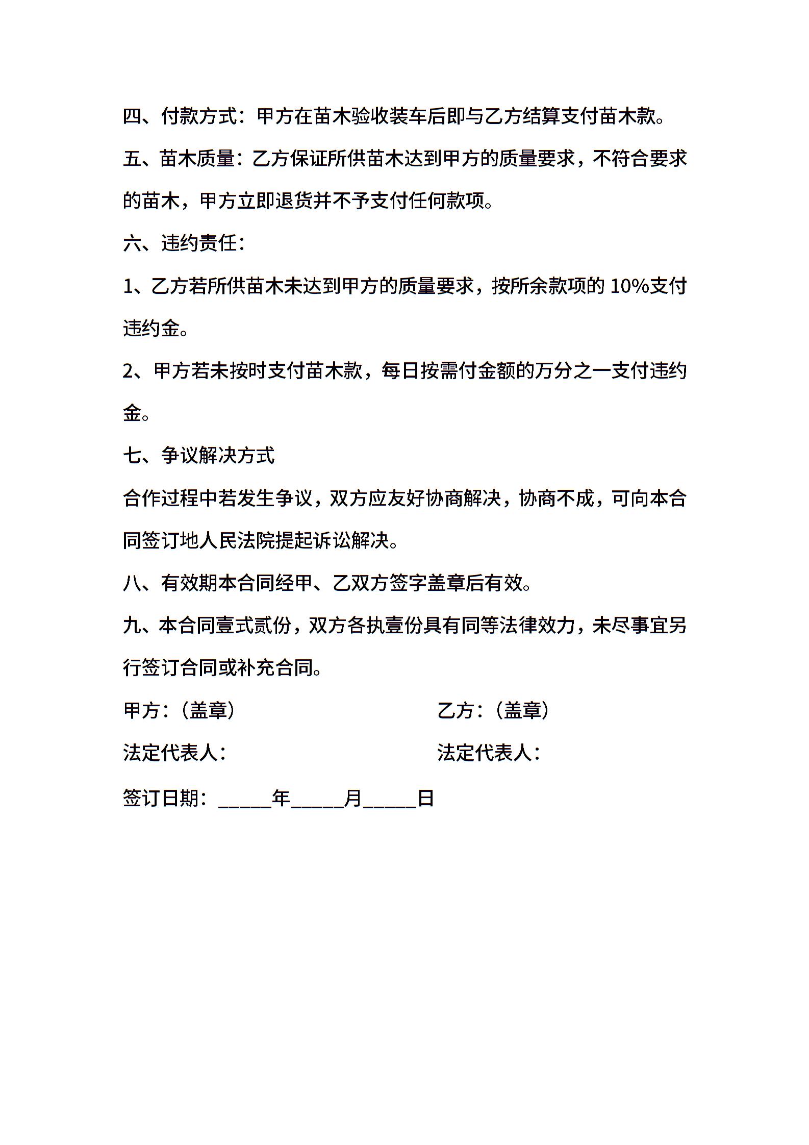 苗木购销合同范本