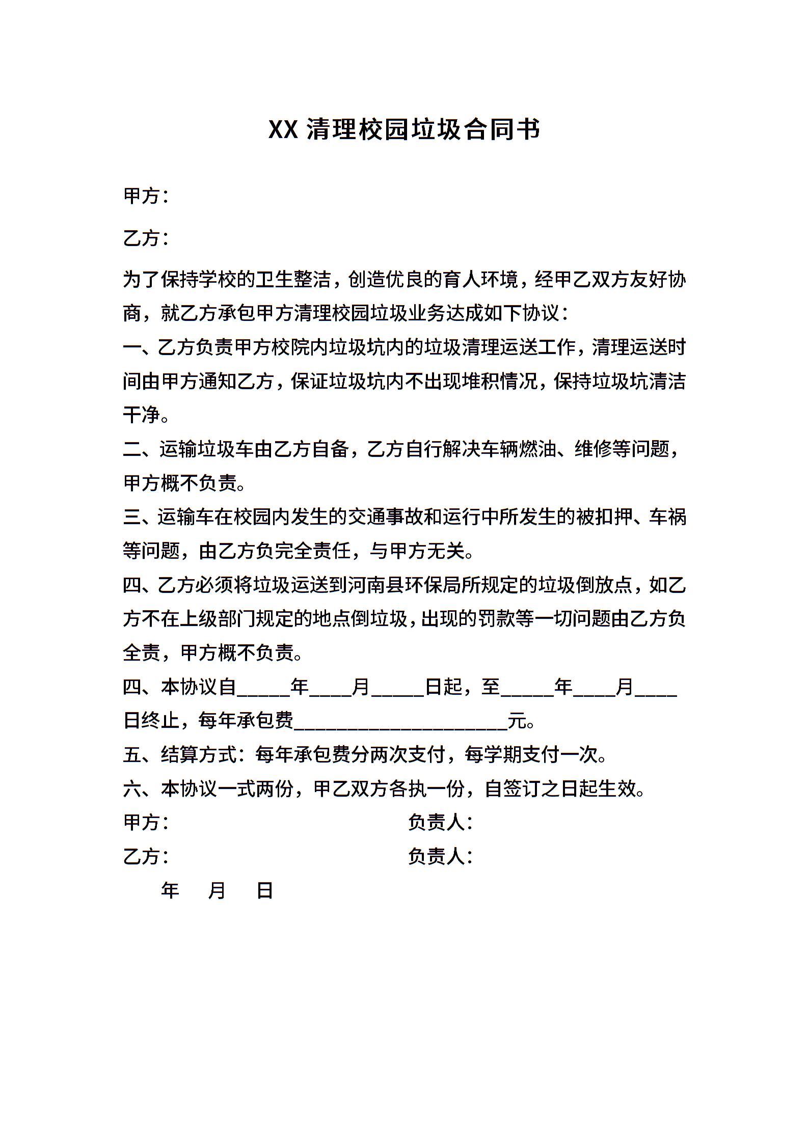清理校园垃圾合同书