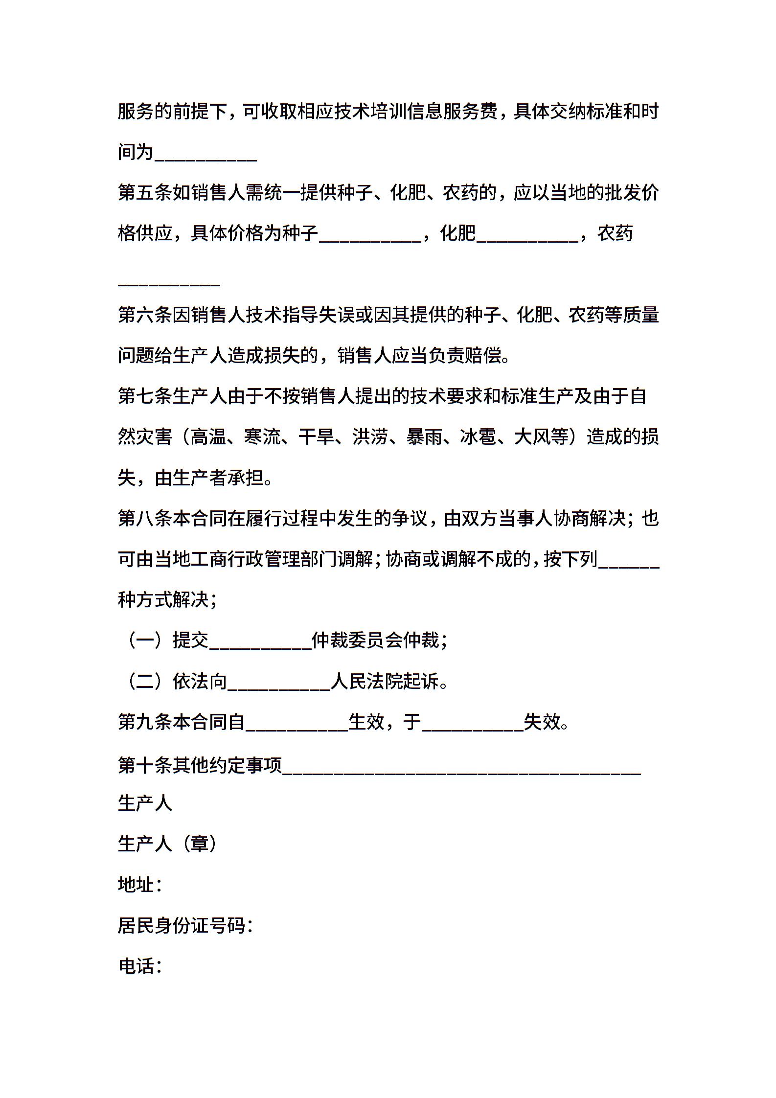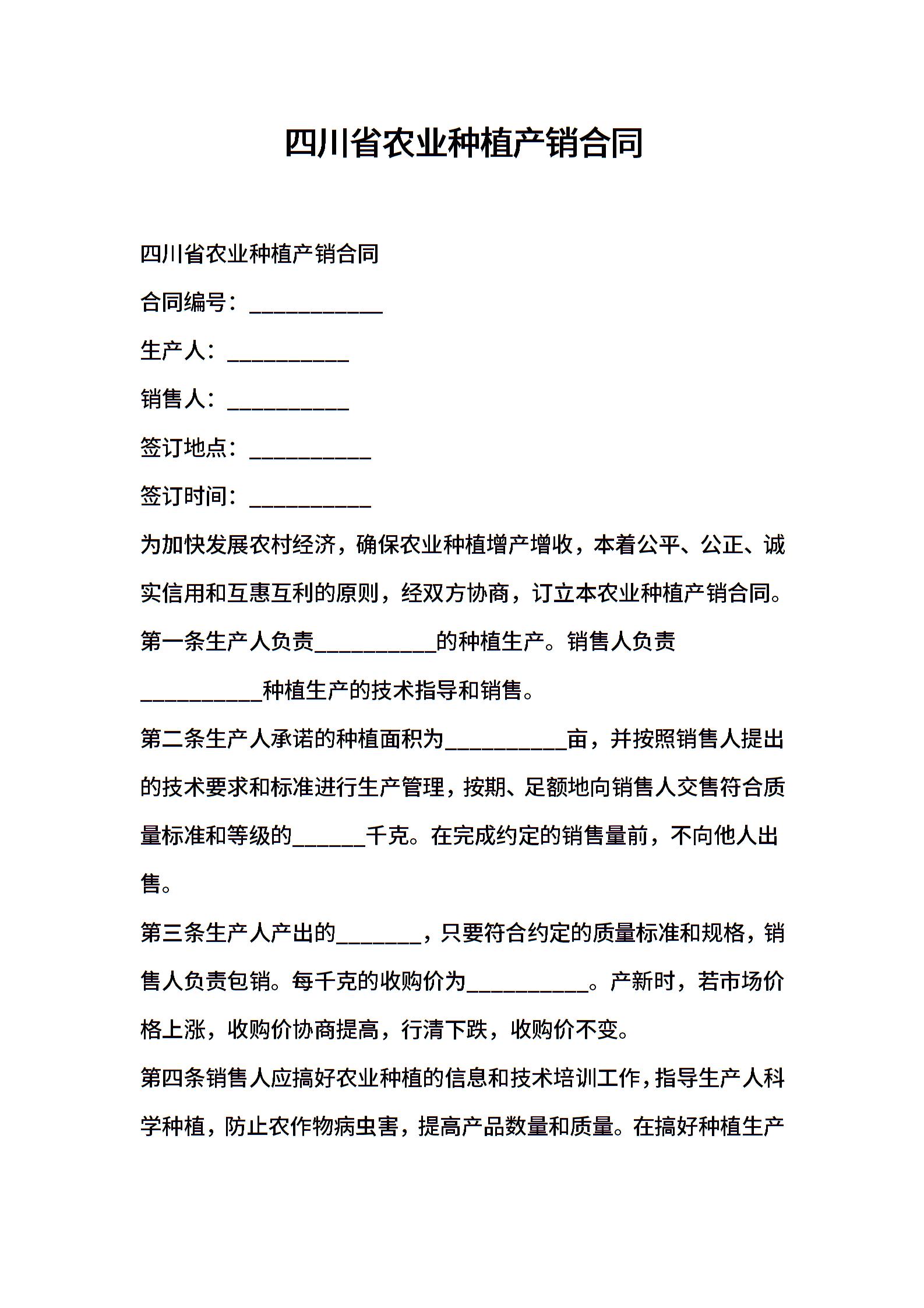 四川省农业种植产销合同