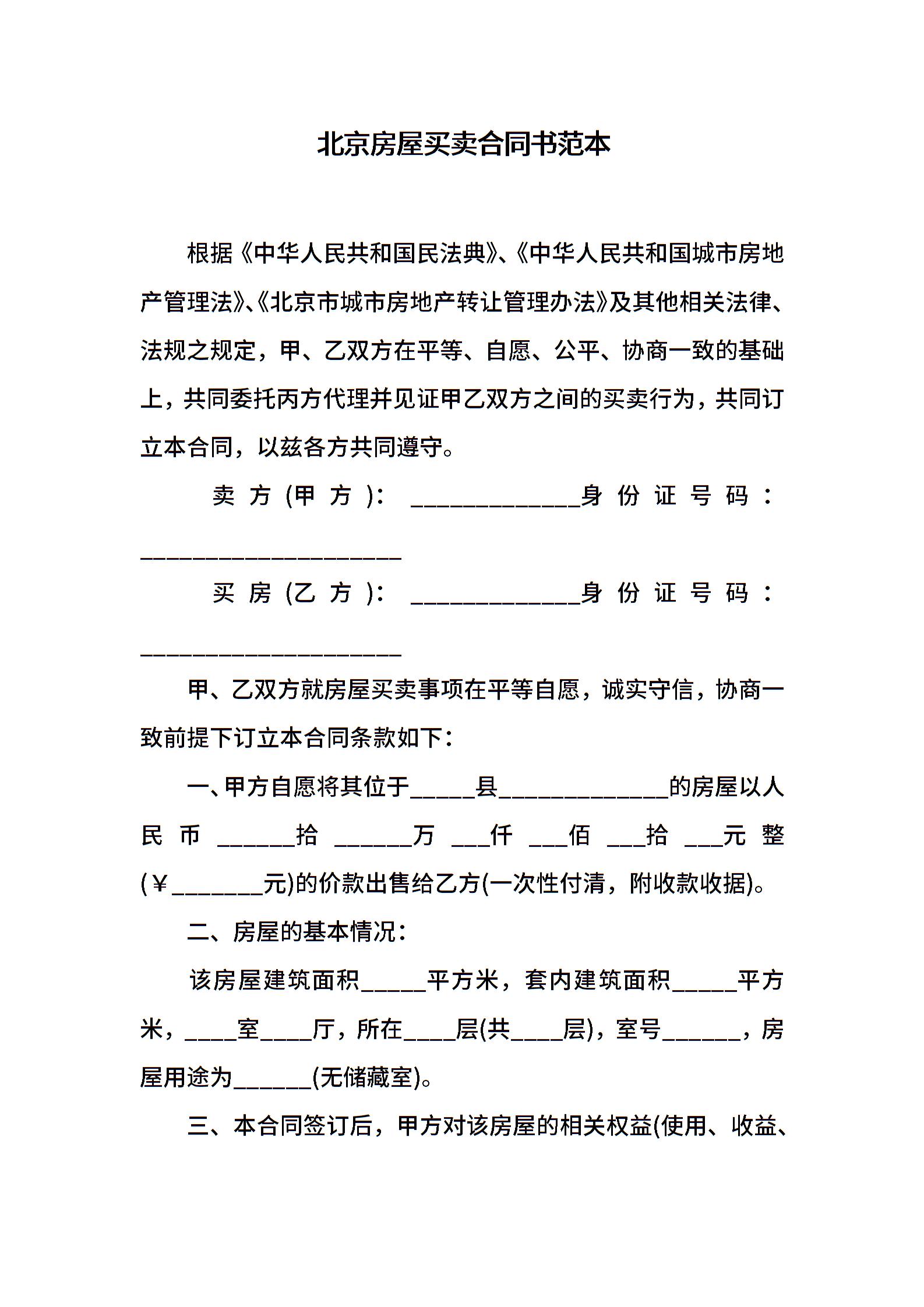 北京房屋买卖合同书范本