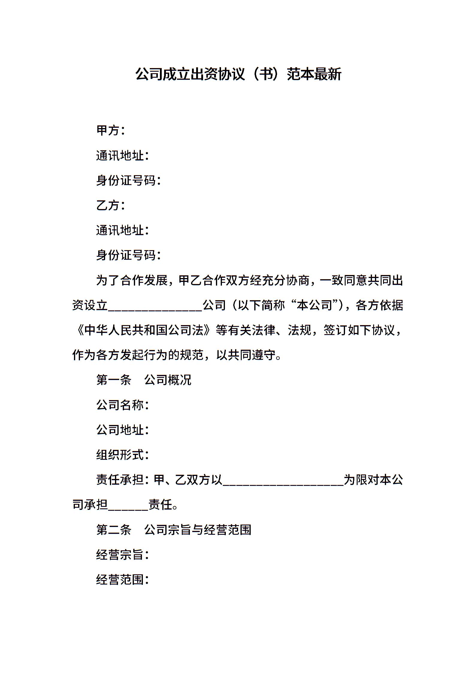 当前位置:量子办公 > 合同模板 > 出资协议 >
