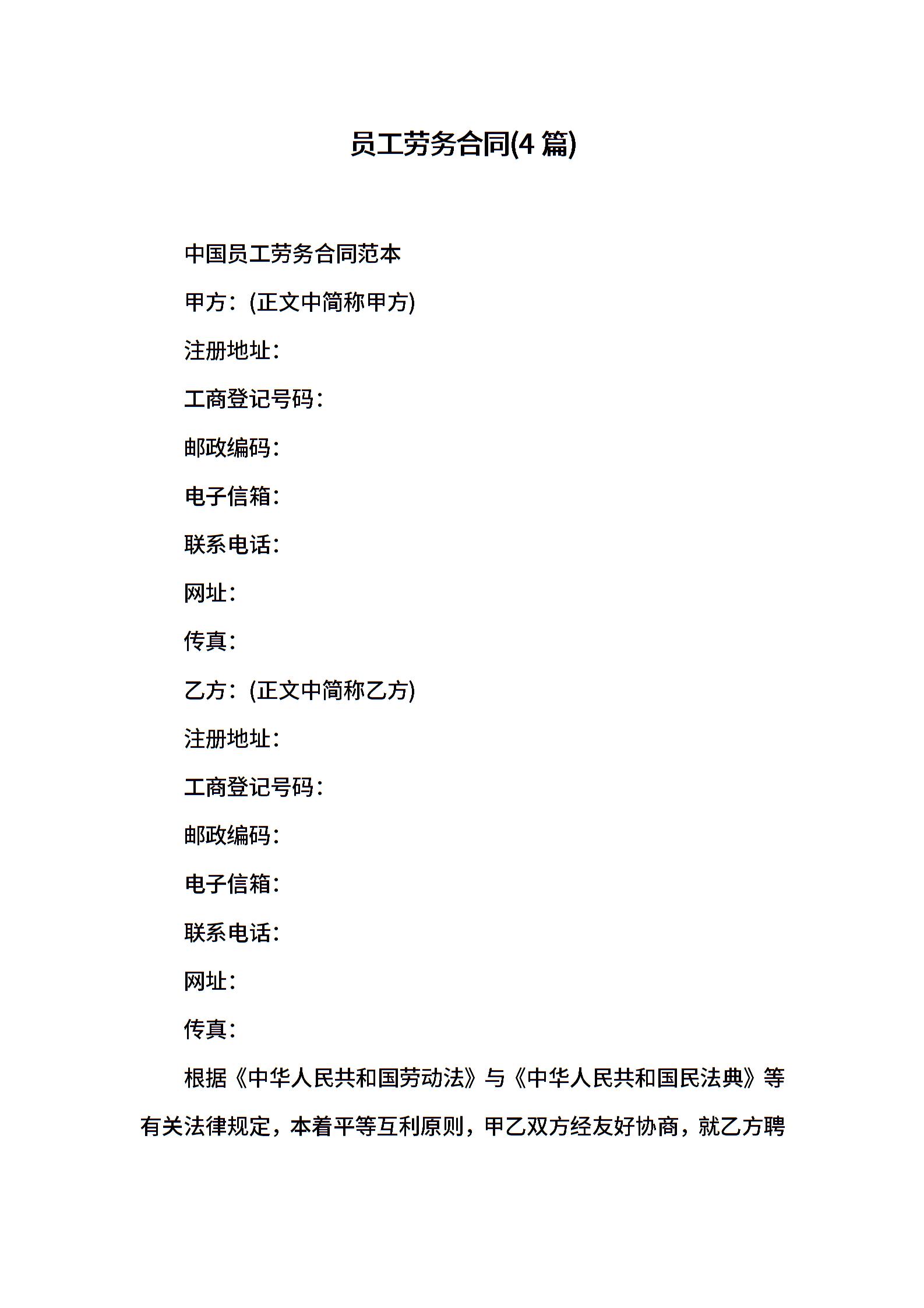 员工劳务合同(4篇)