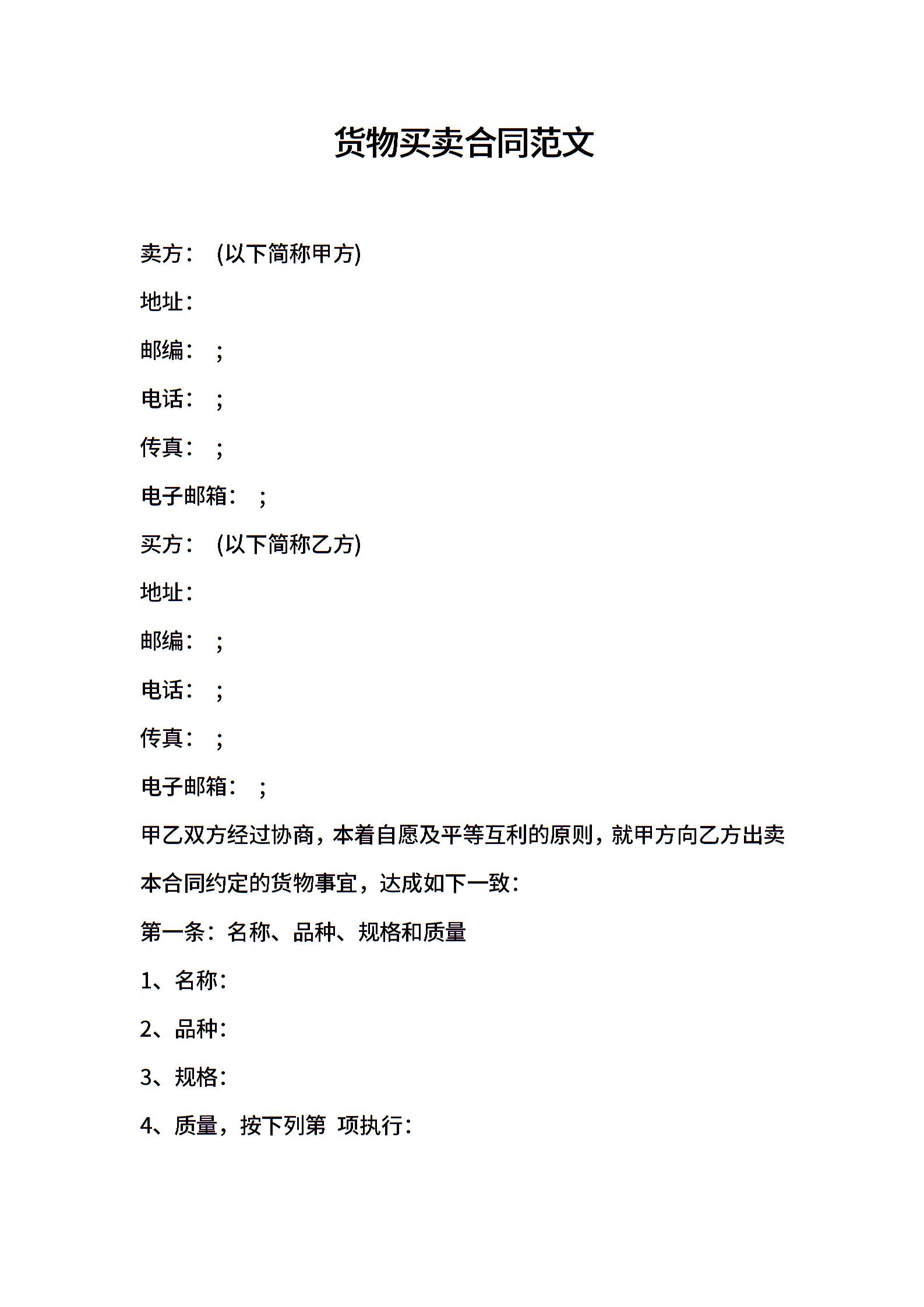 货物买卖合同范文