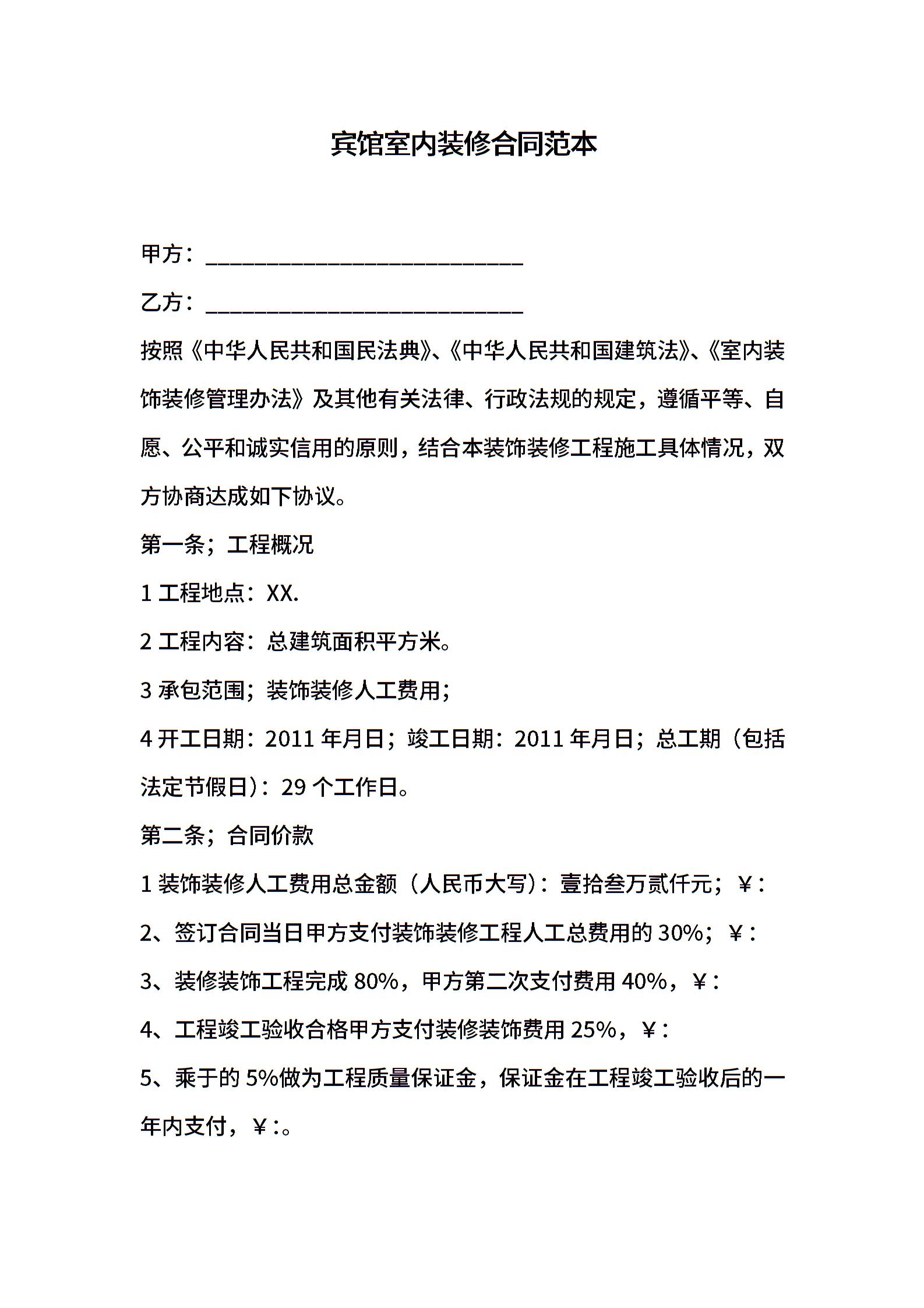 宾馆室内装修合同范本