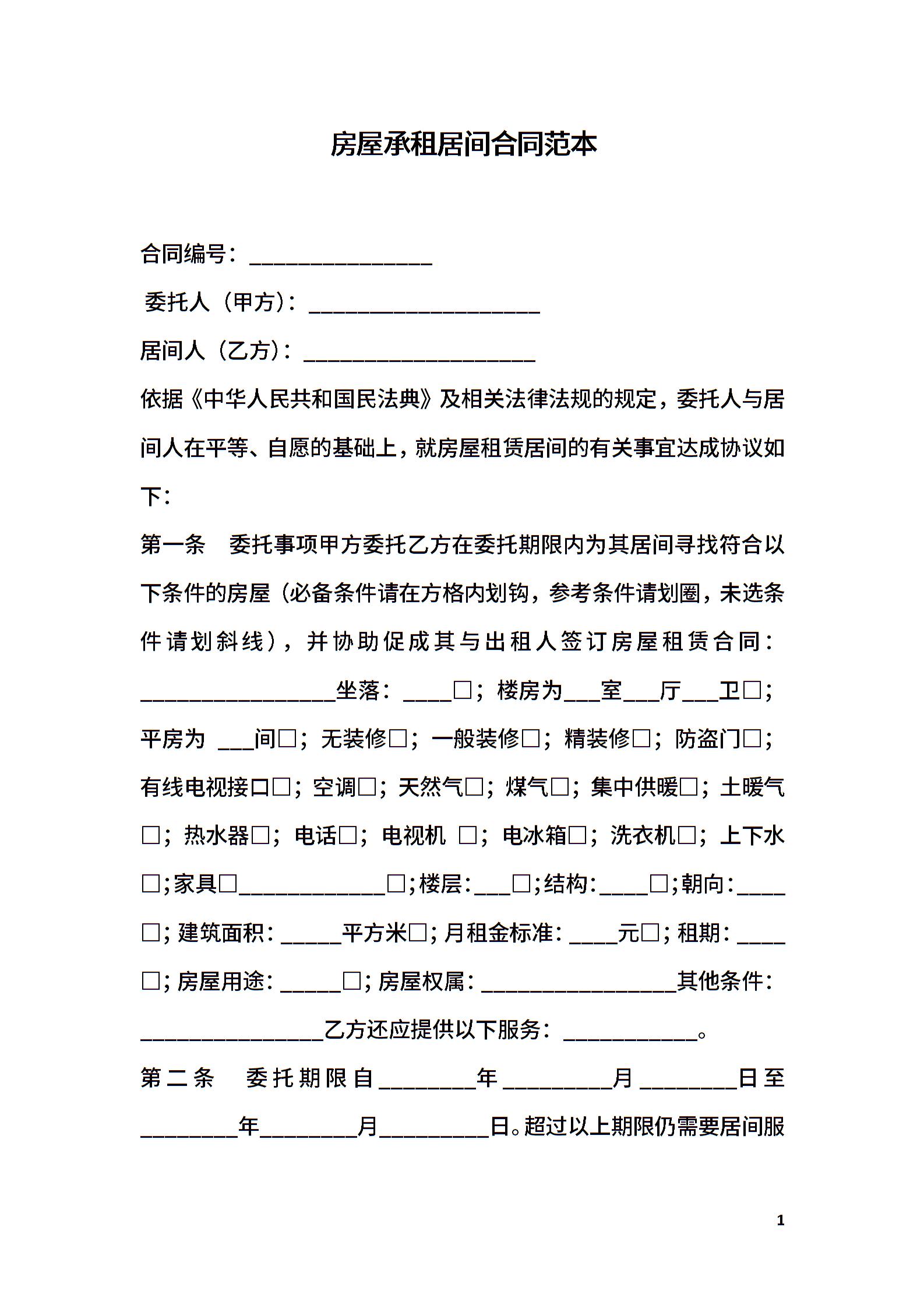 房屋承租居间合同范本
