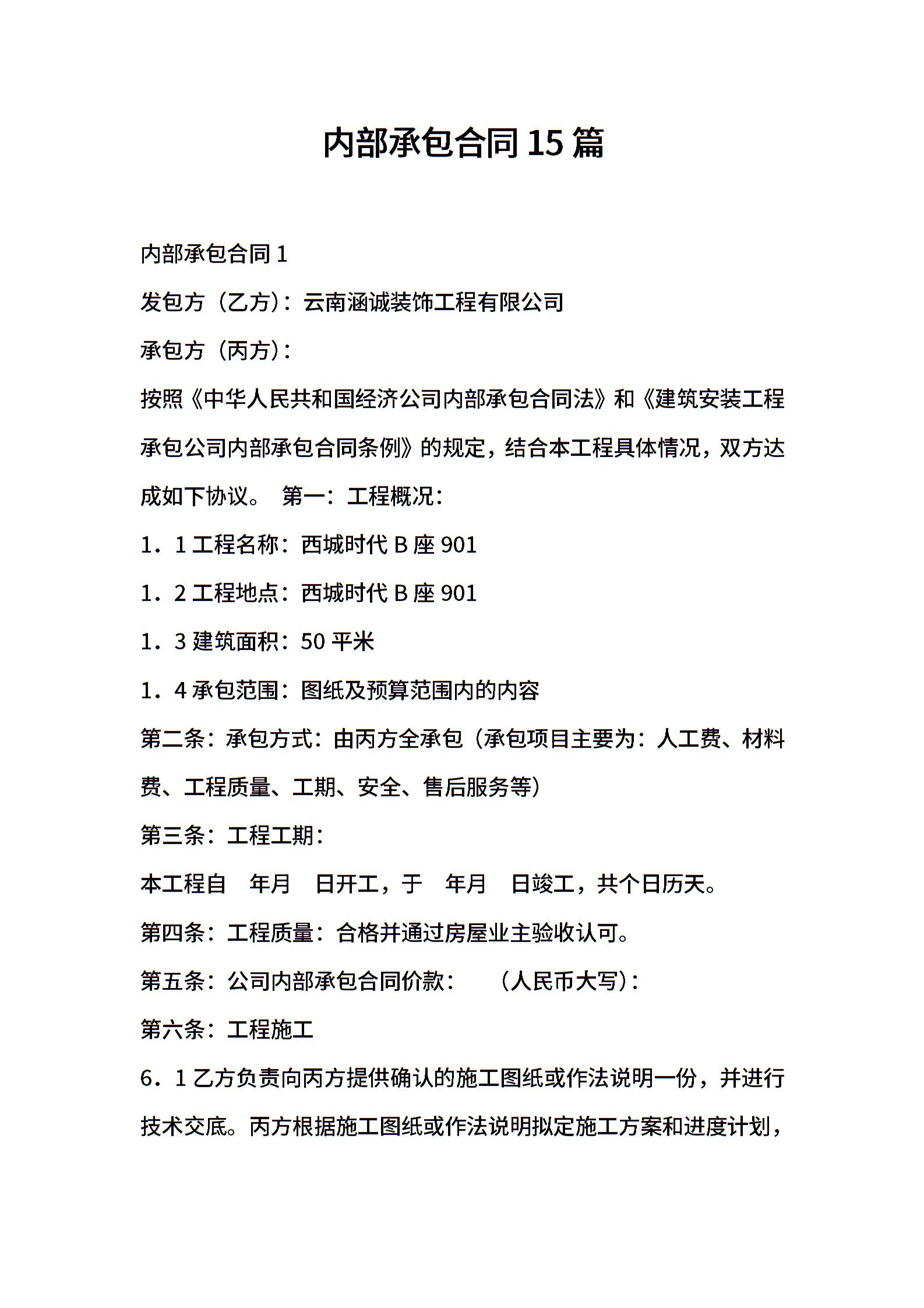内部承包合同15篇