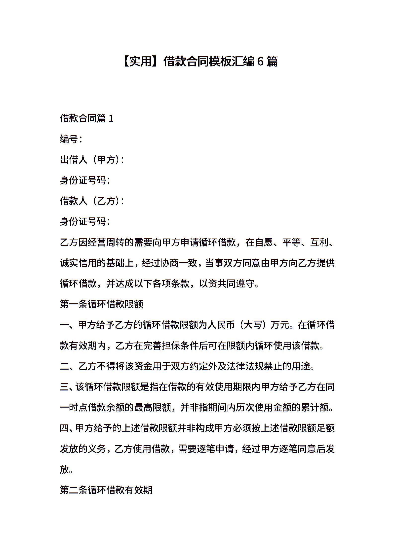 借款合同模板汇编6篇