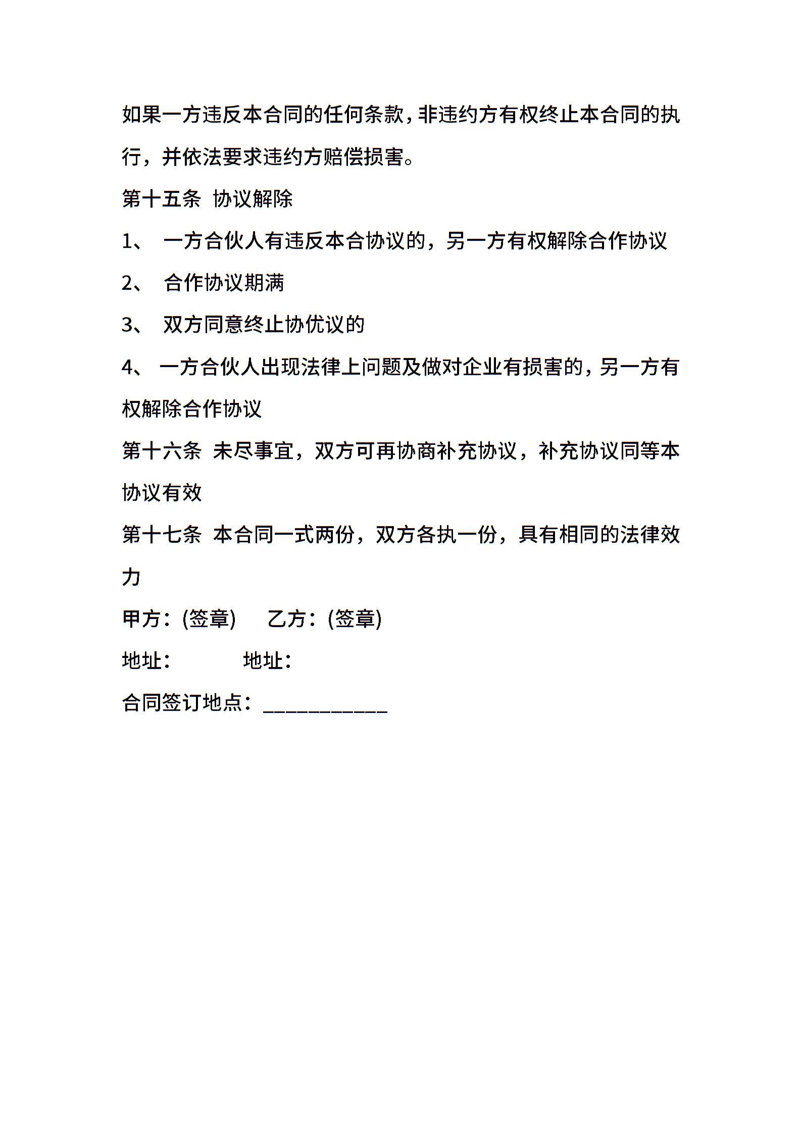 当前位置:量子办公 > 合同模板 > 合作合同 >