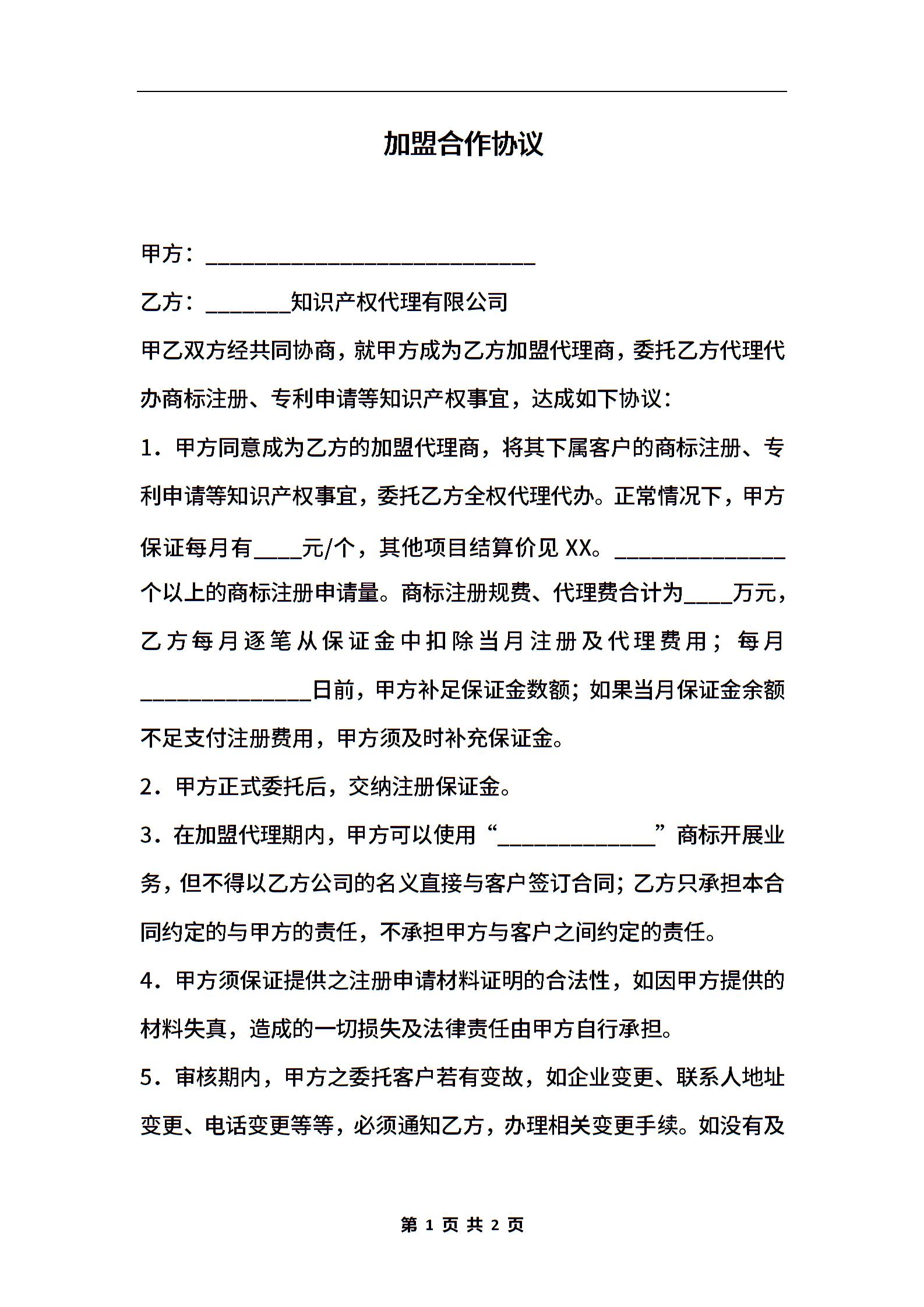 加盟合作协议