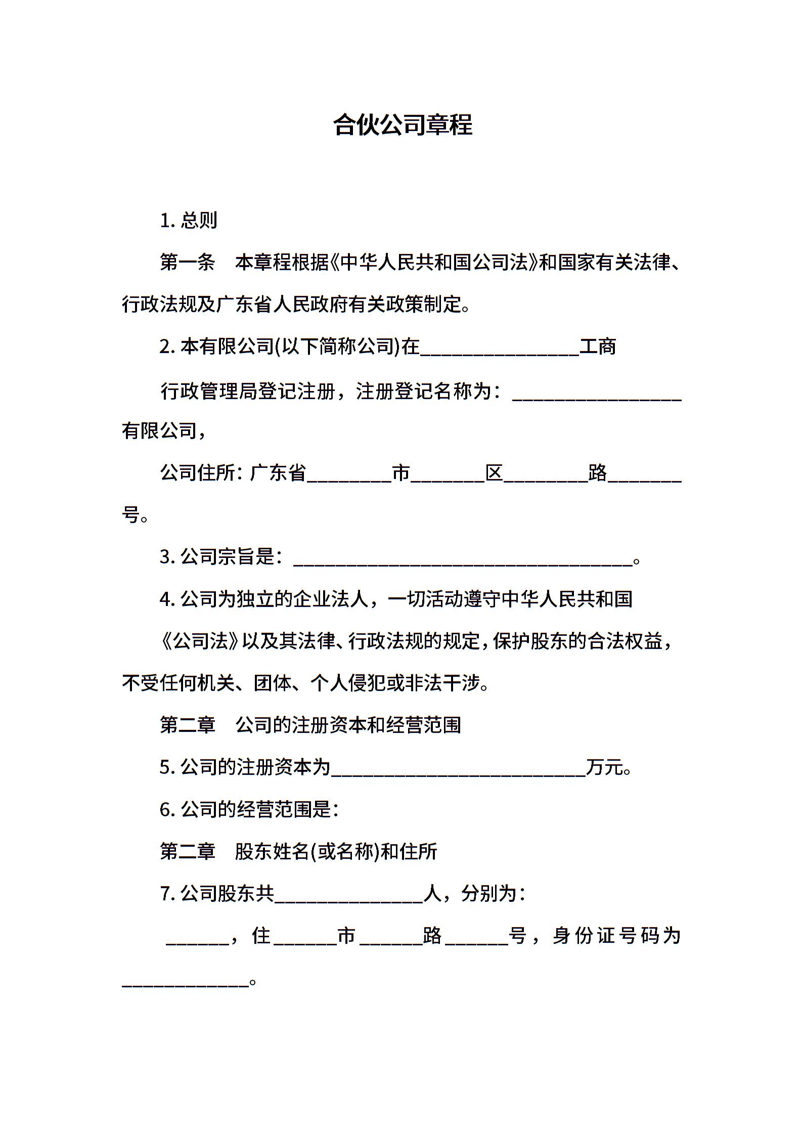 合伙公司章程