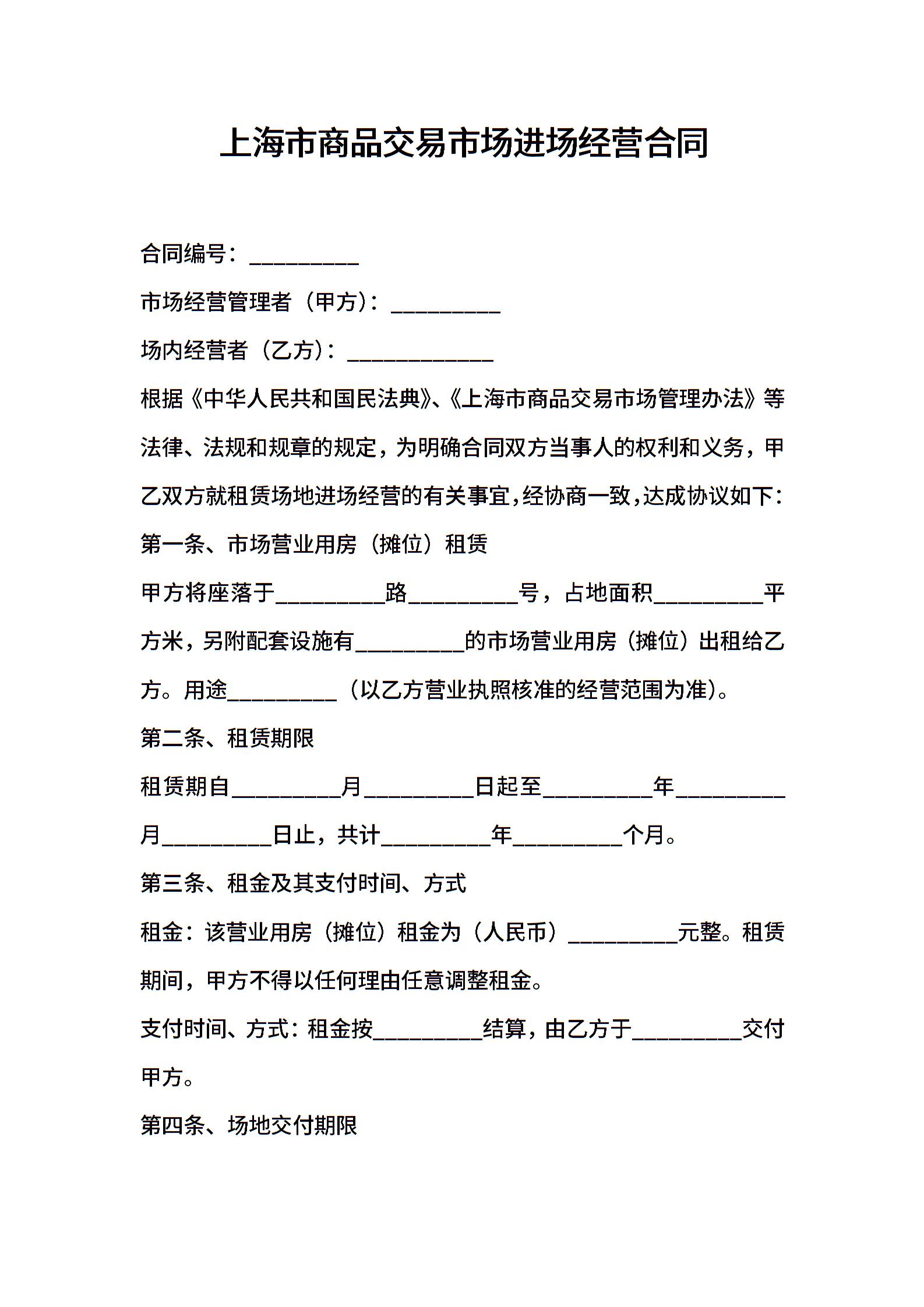 上海市商品交易市场进场经营合同 (2)