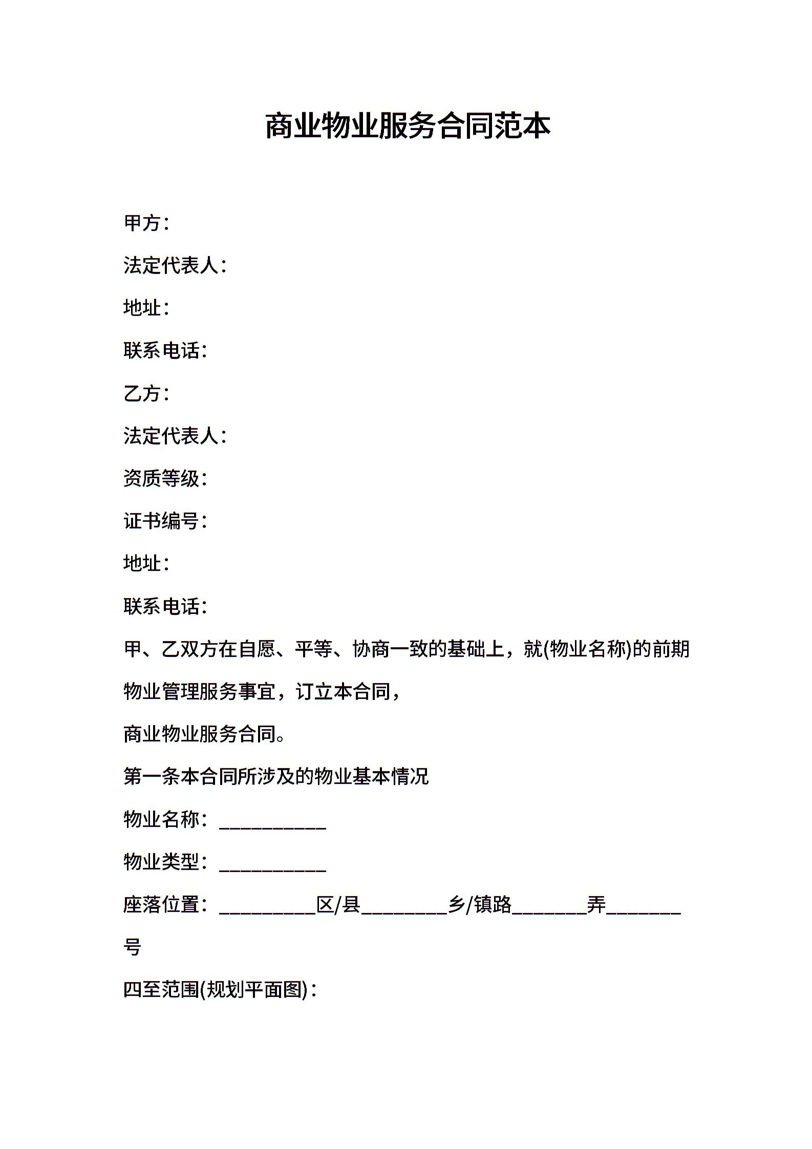 2021年商业物业服务合同范本