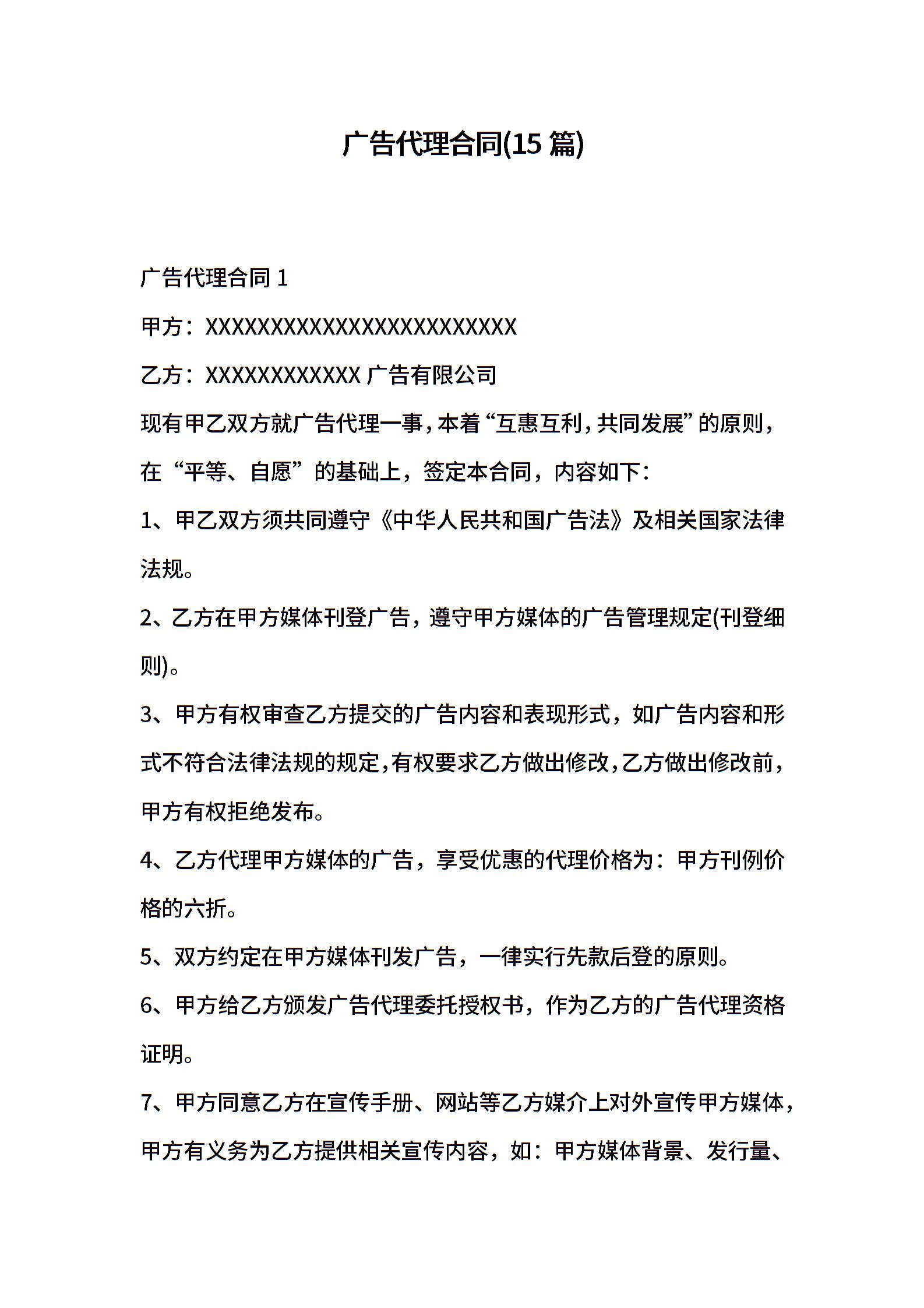 广告代理合同(15篇)
