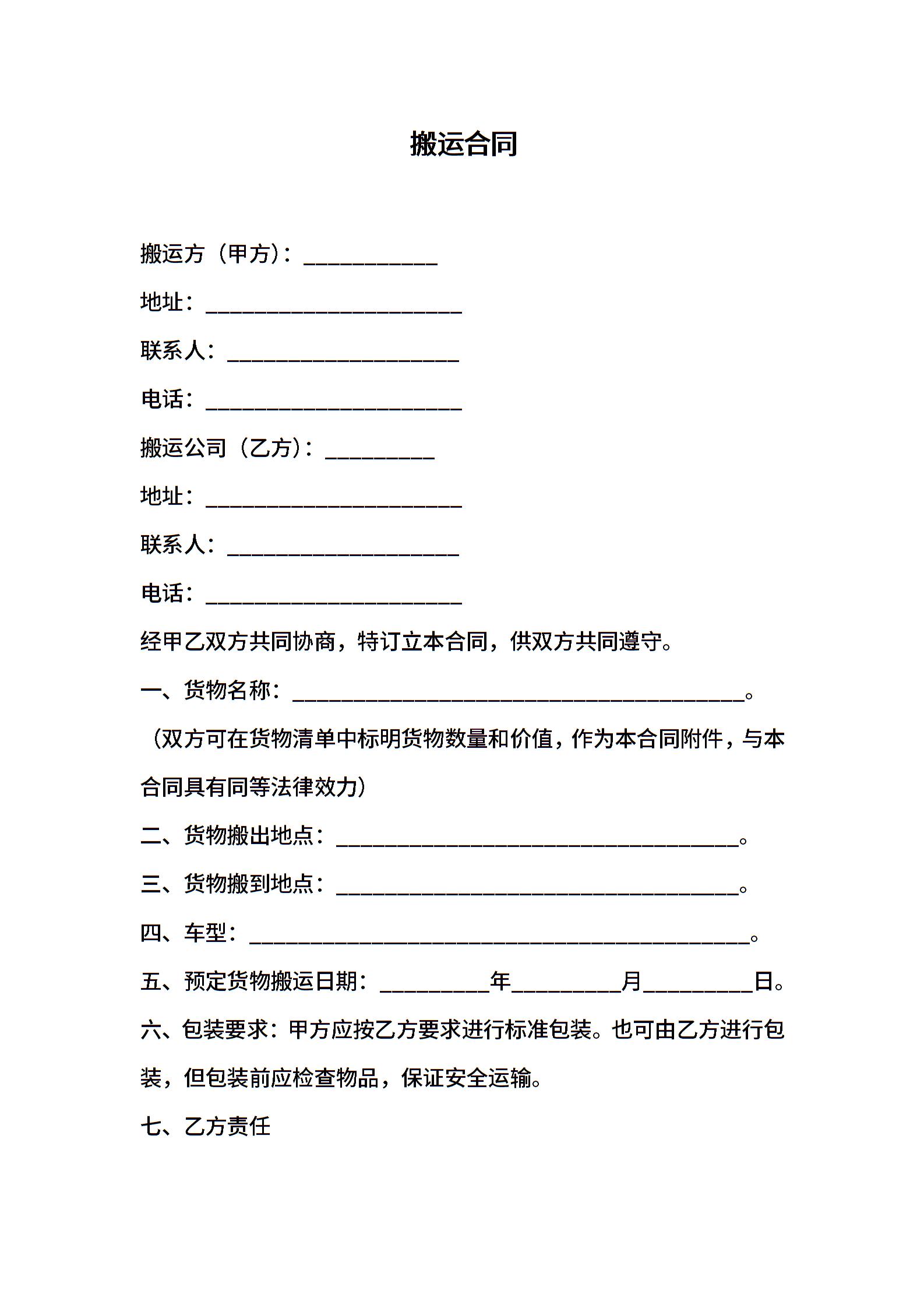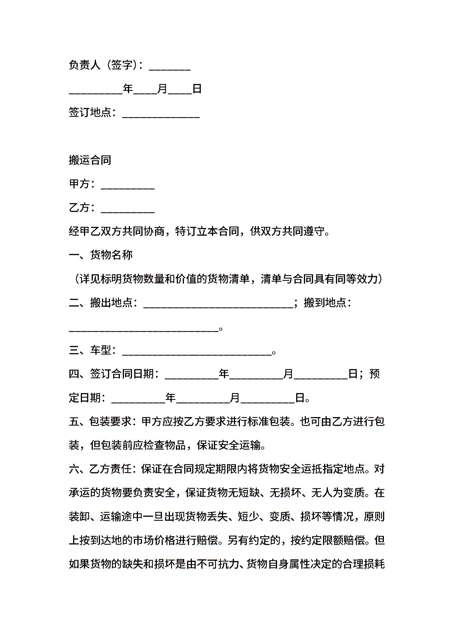 搬运合同范本 (2)