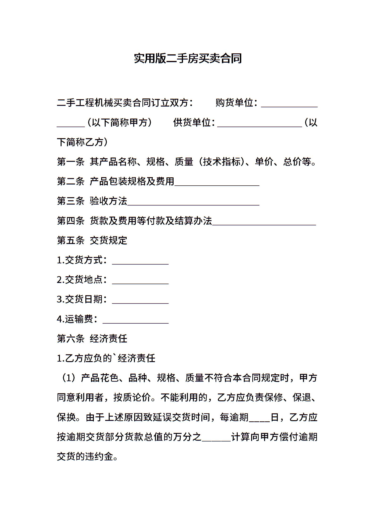 实用版二手房买卖合同