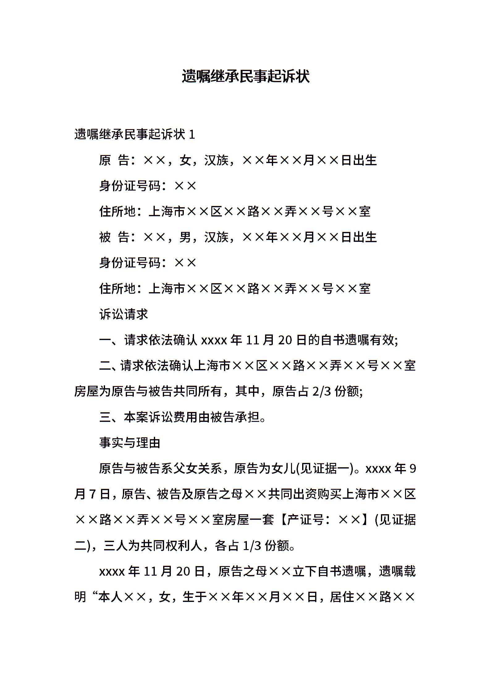 当前位置:量子办公 > 合同模板 > 起诉状 >