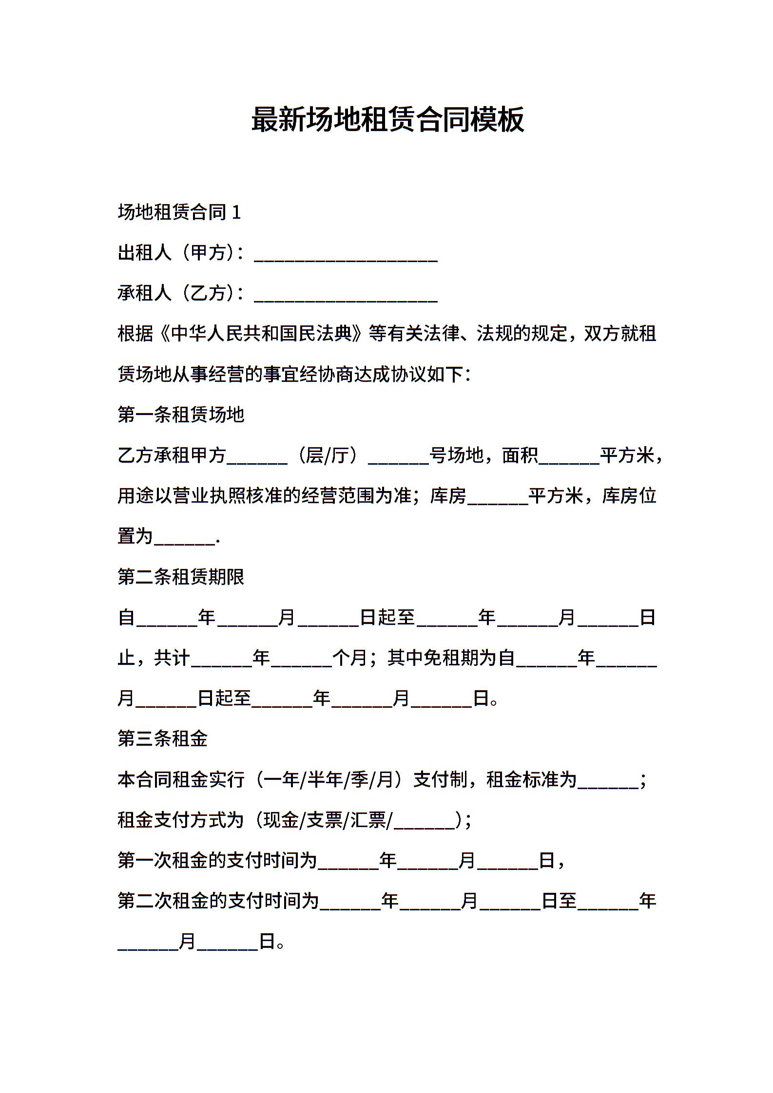 最新场地租赁合同模板