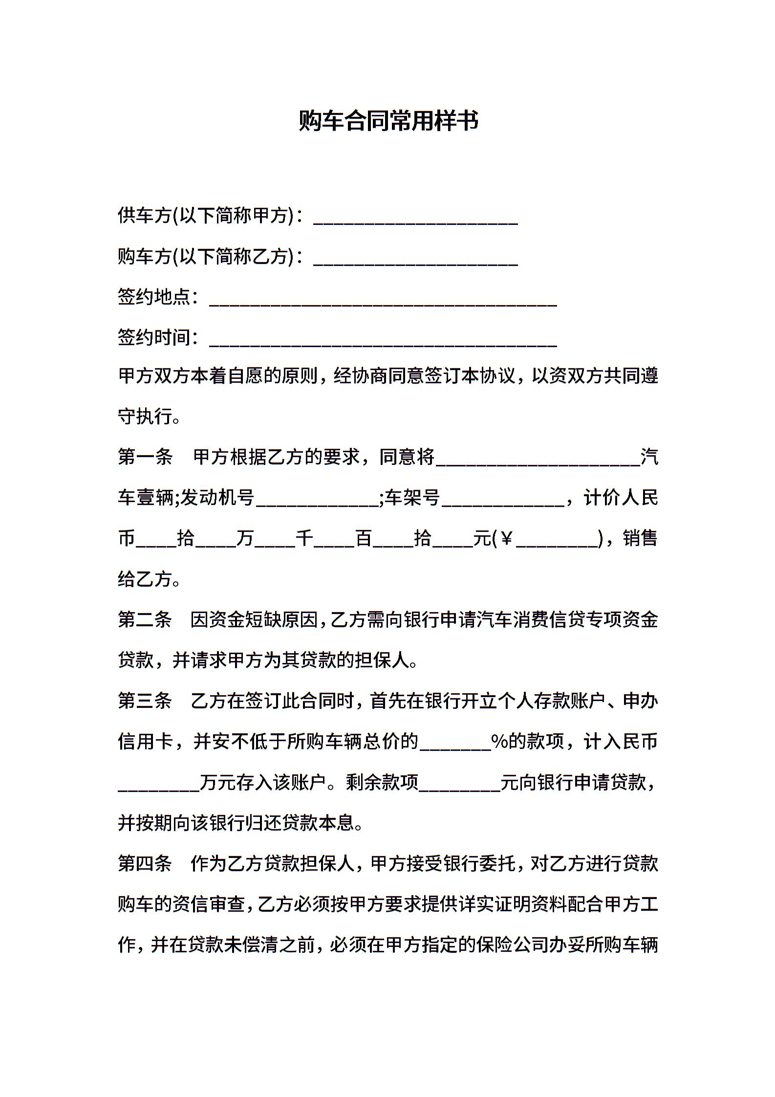 购车合同常用样书