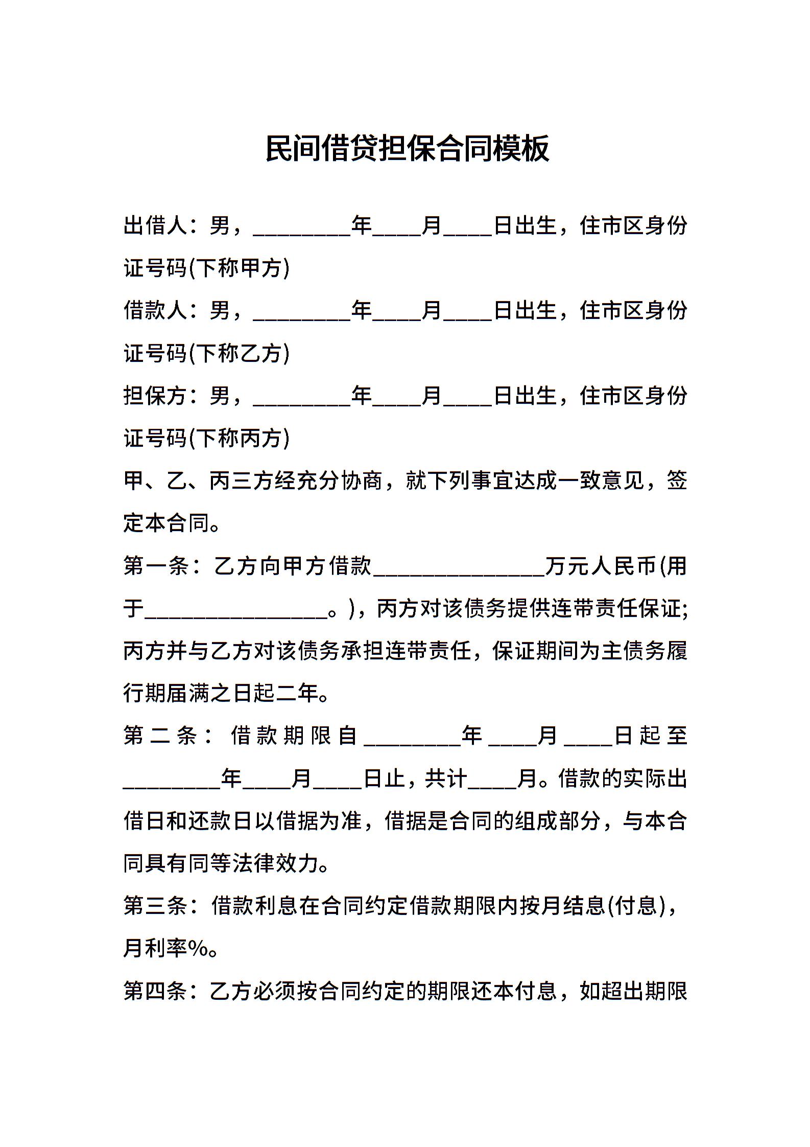 民间借贷担保合同模板