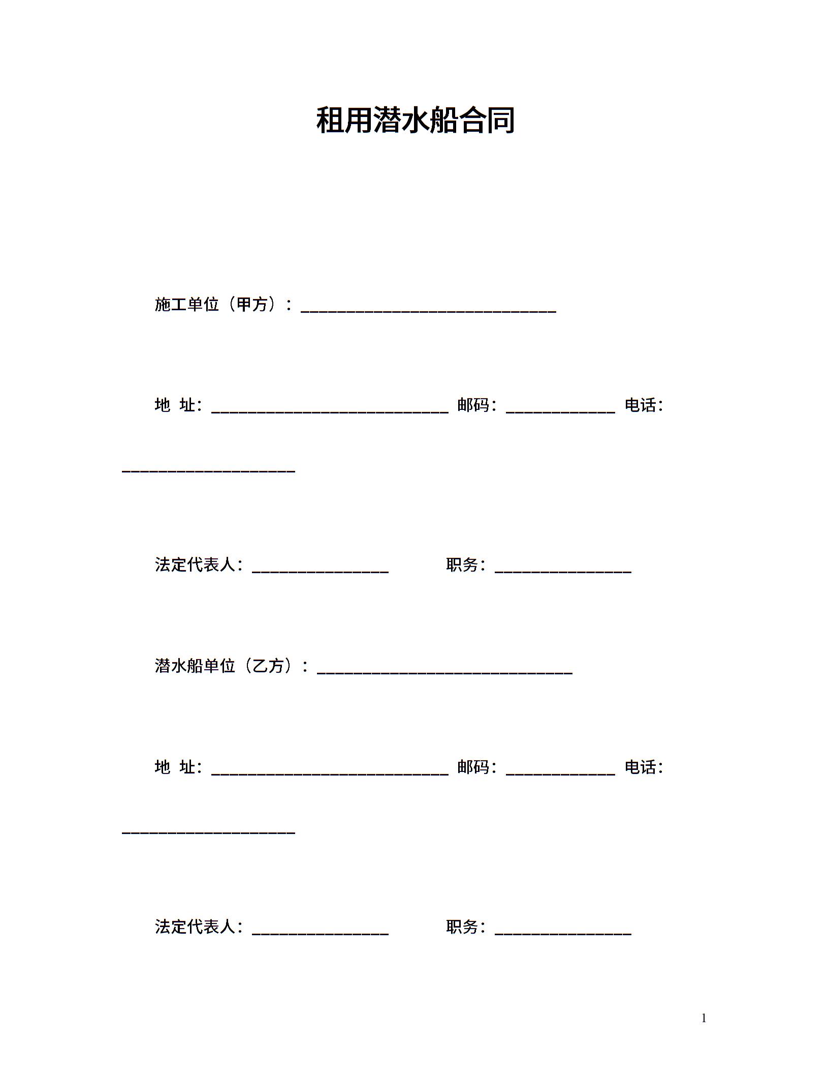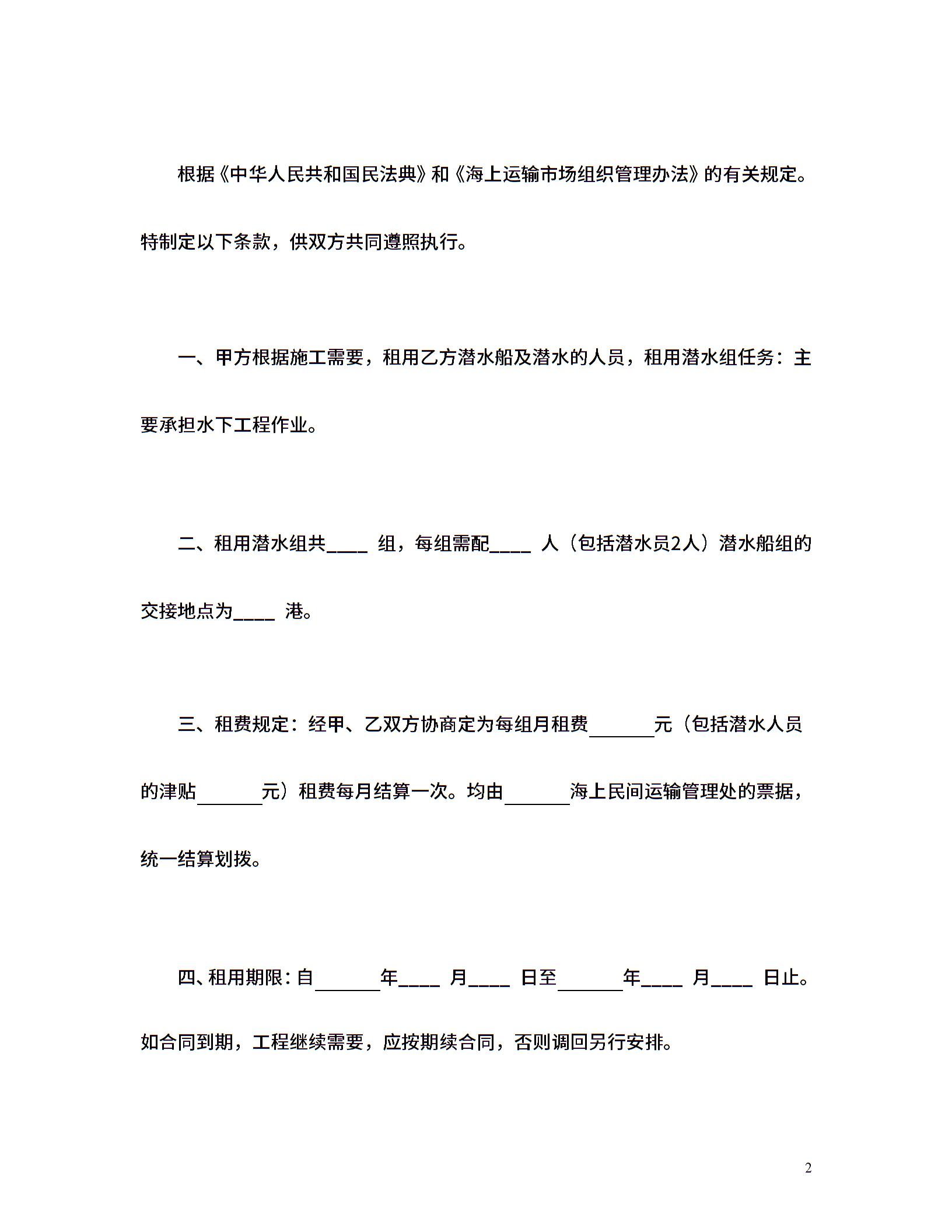 租用潜水船合同
