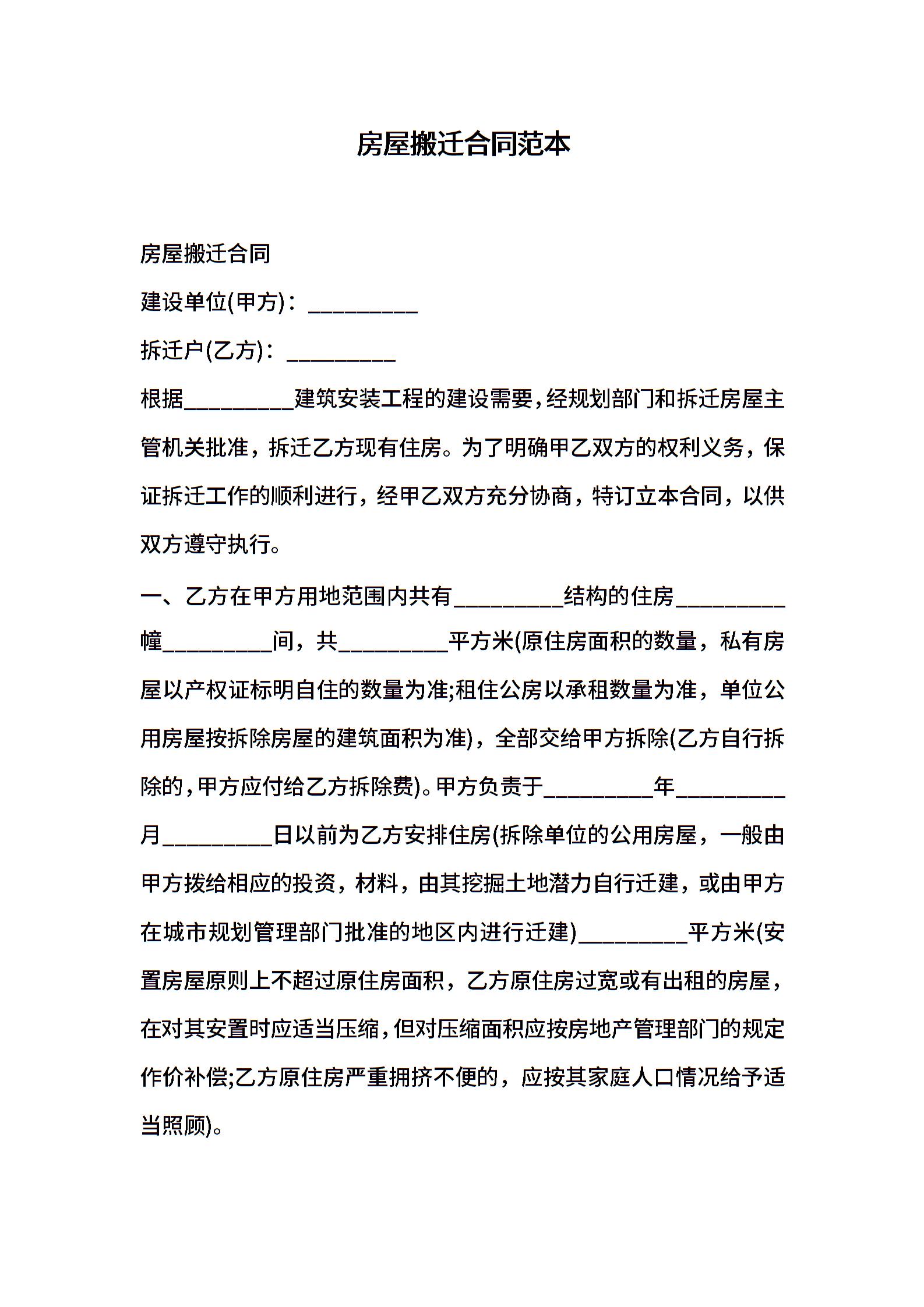 房屋搬迁合同范本