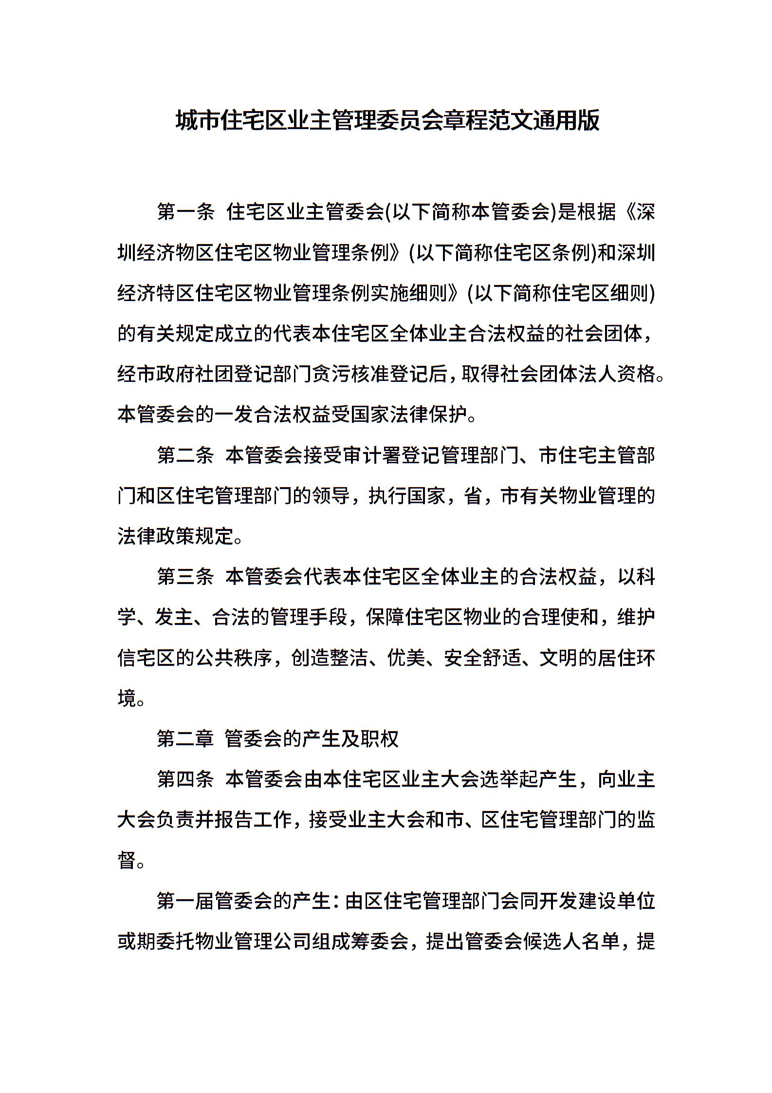 城市住宅区业主管理委员会章程范文通用版
