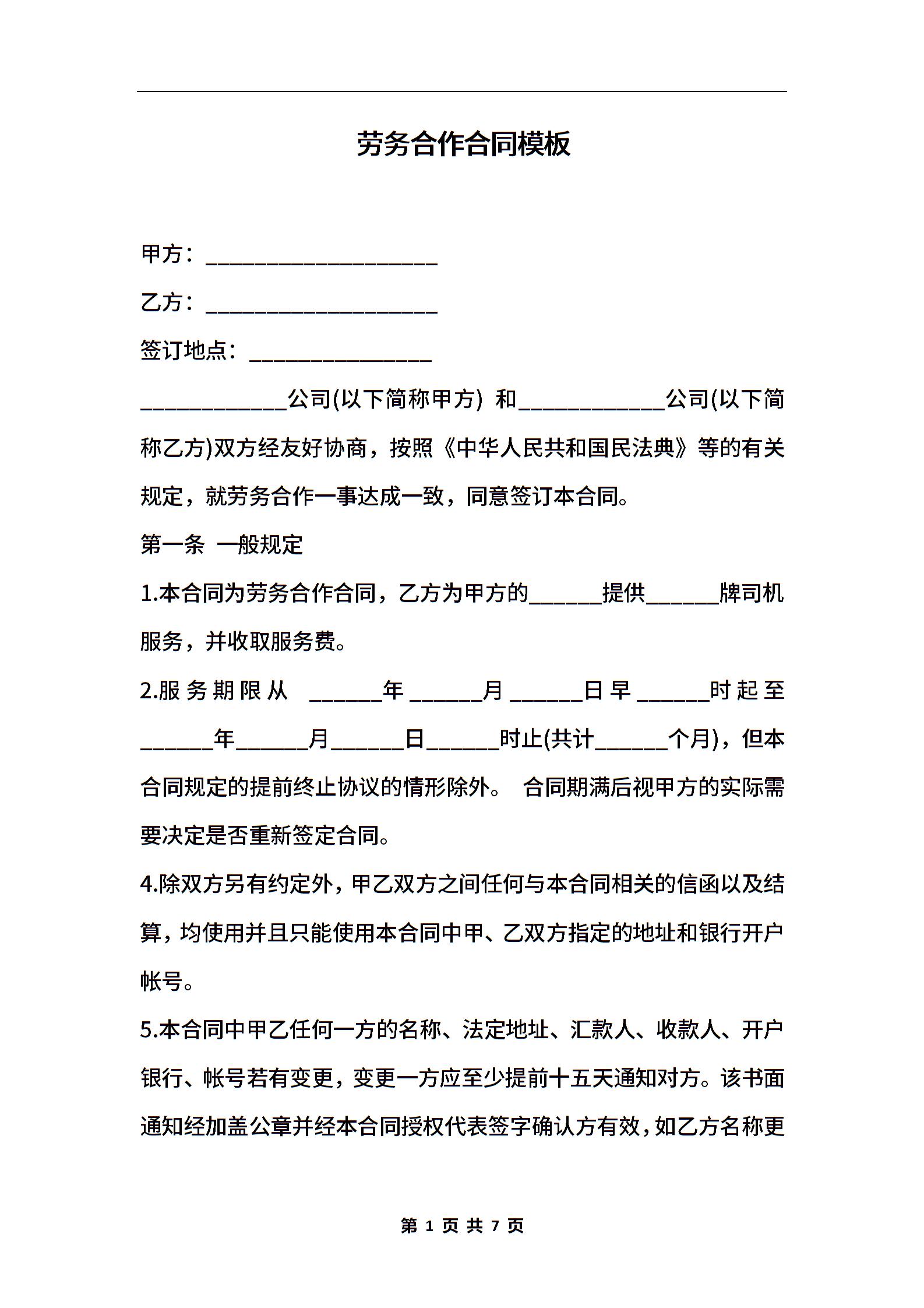 劳务合作合同模板