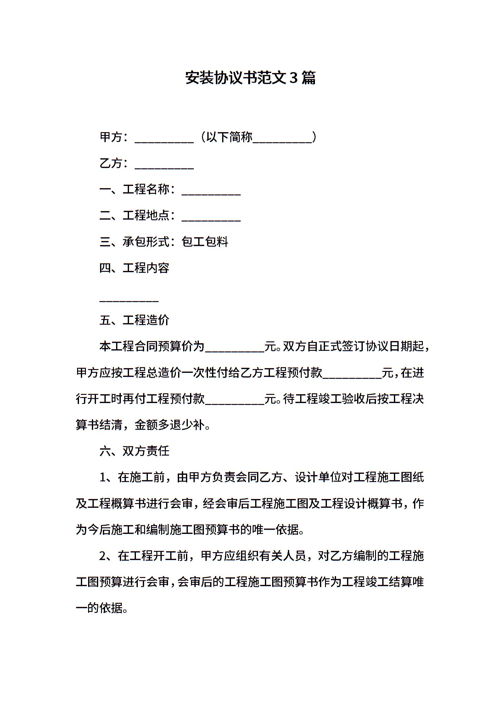 安装协议书范文3篇