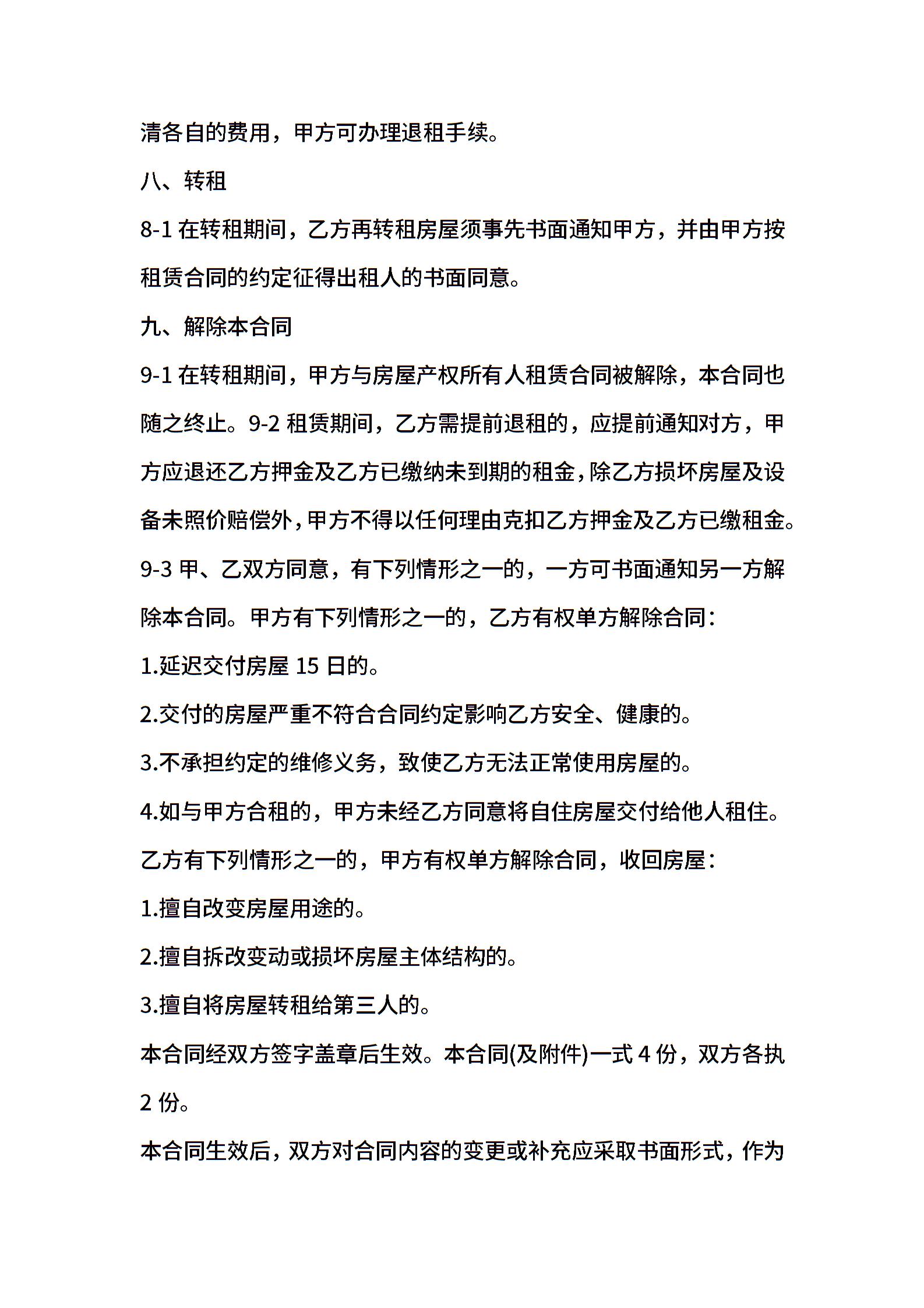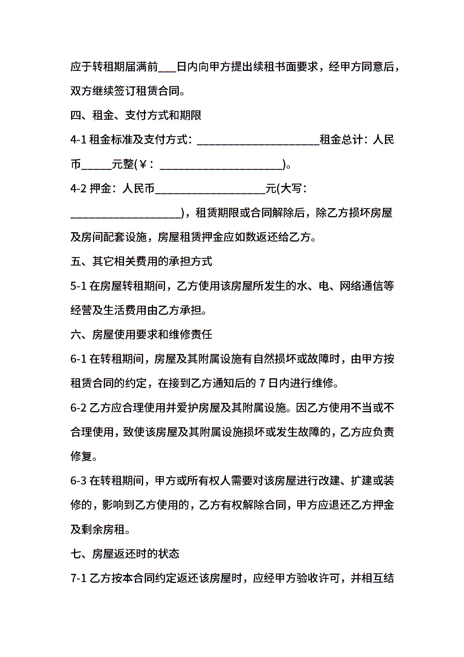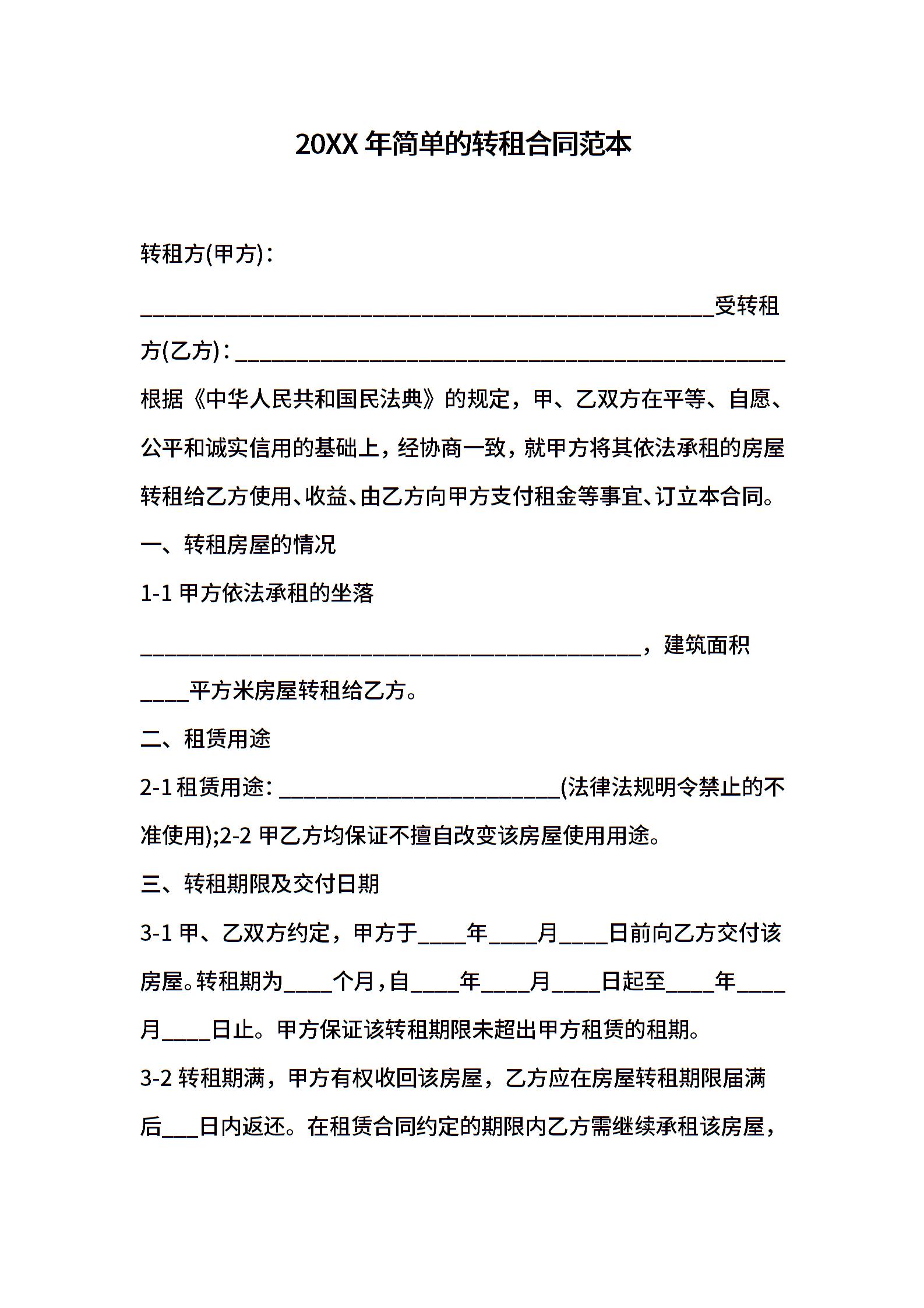 2021年简单的转租合同范本