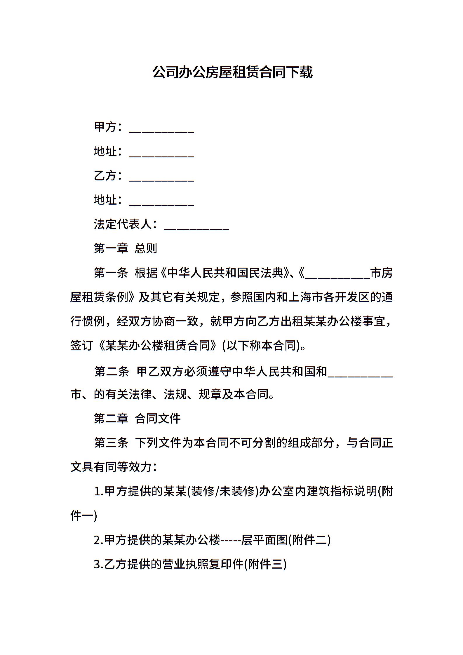 公司办公房屋租赁合同下载