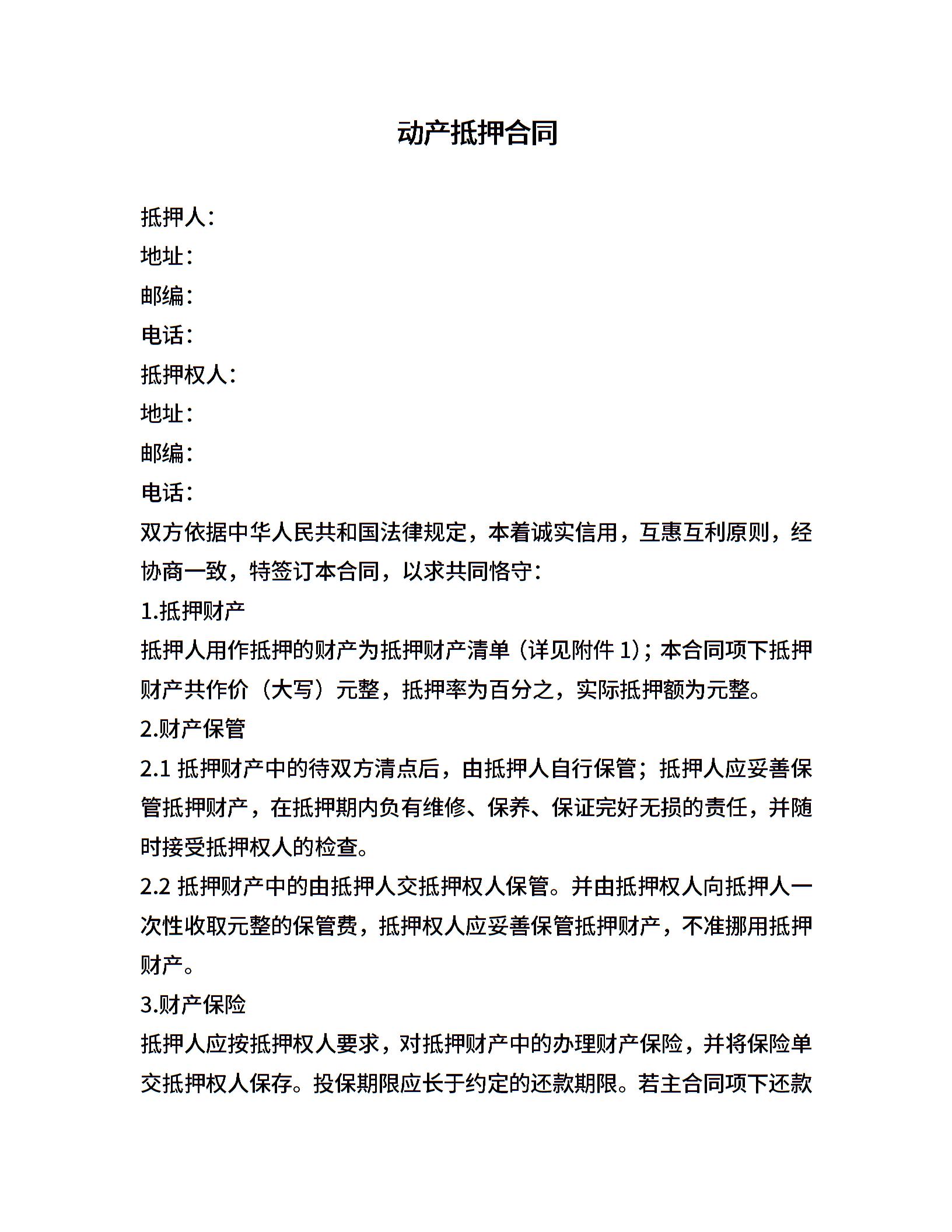 动产抵押合同