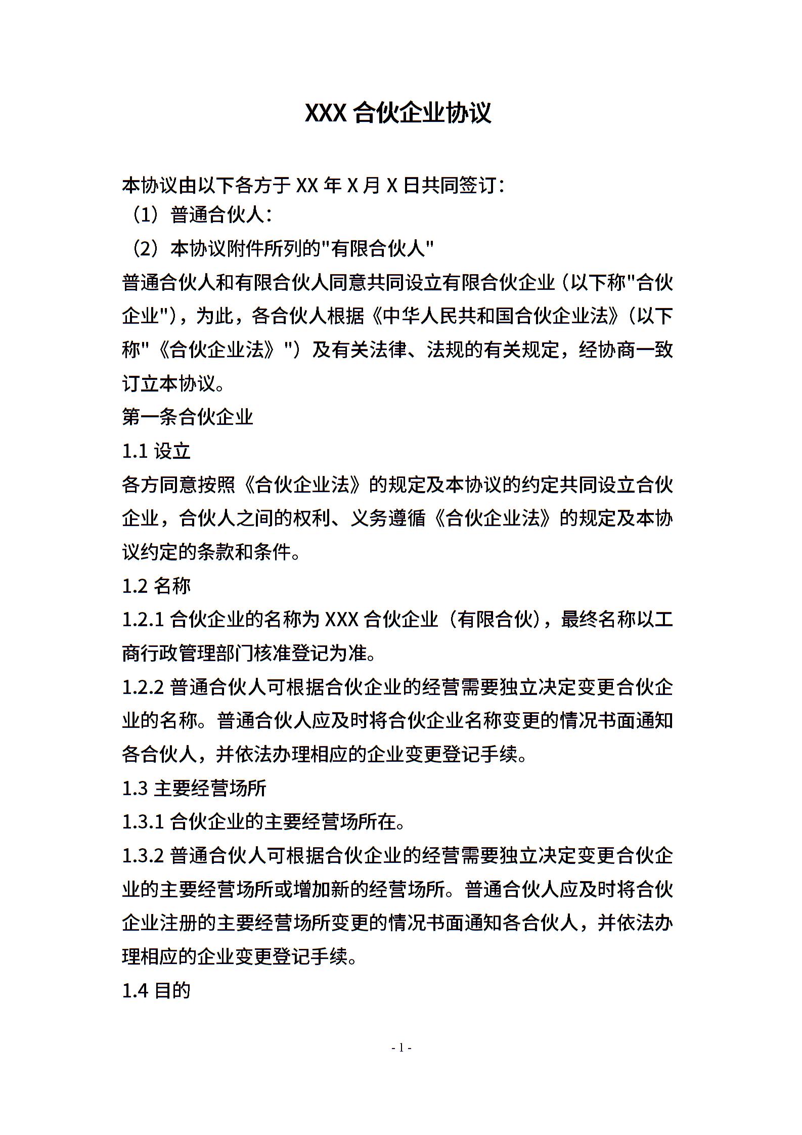 XXX合伙协议(持股平台)