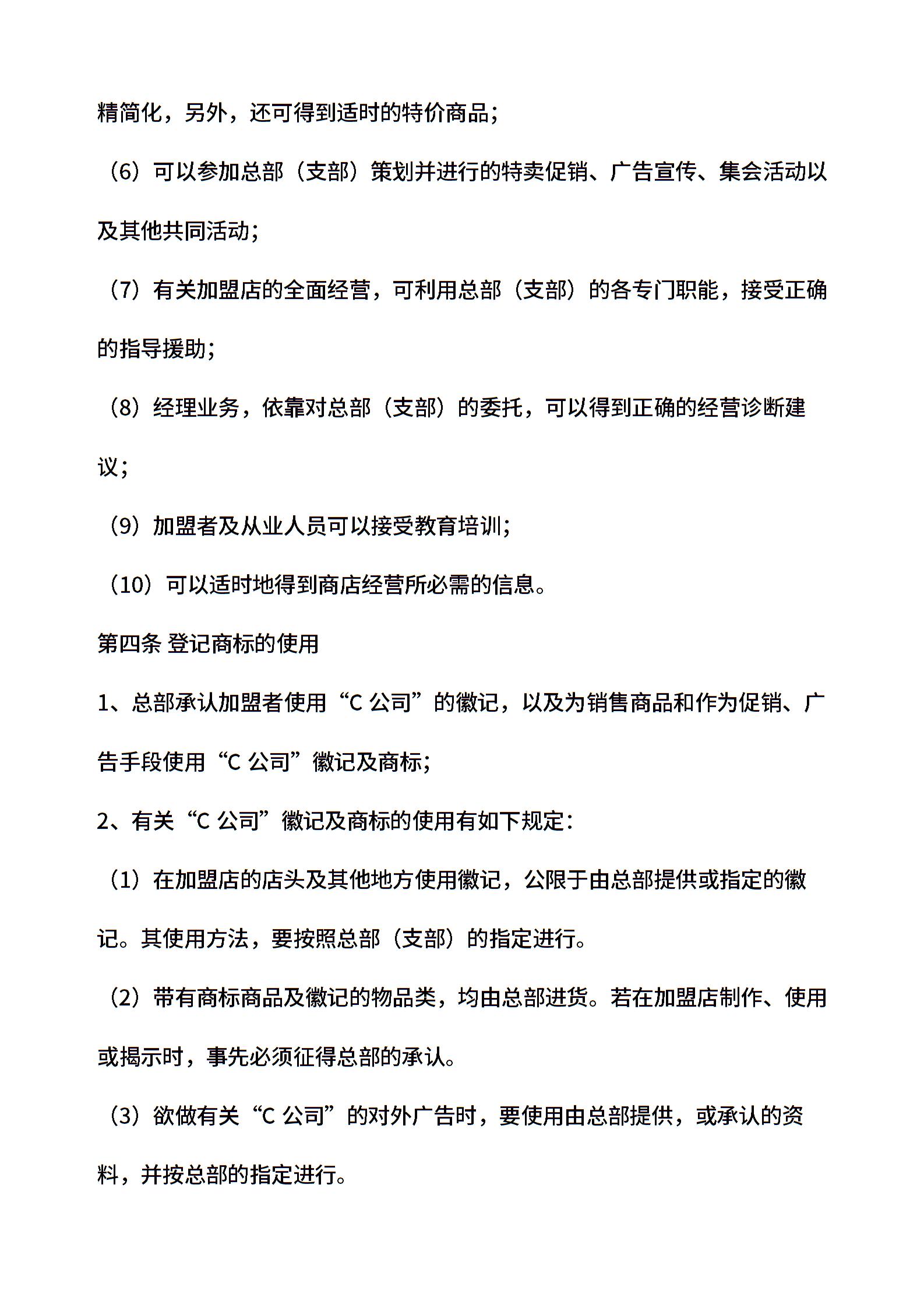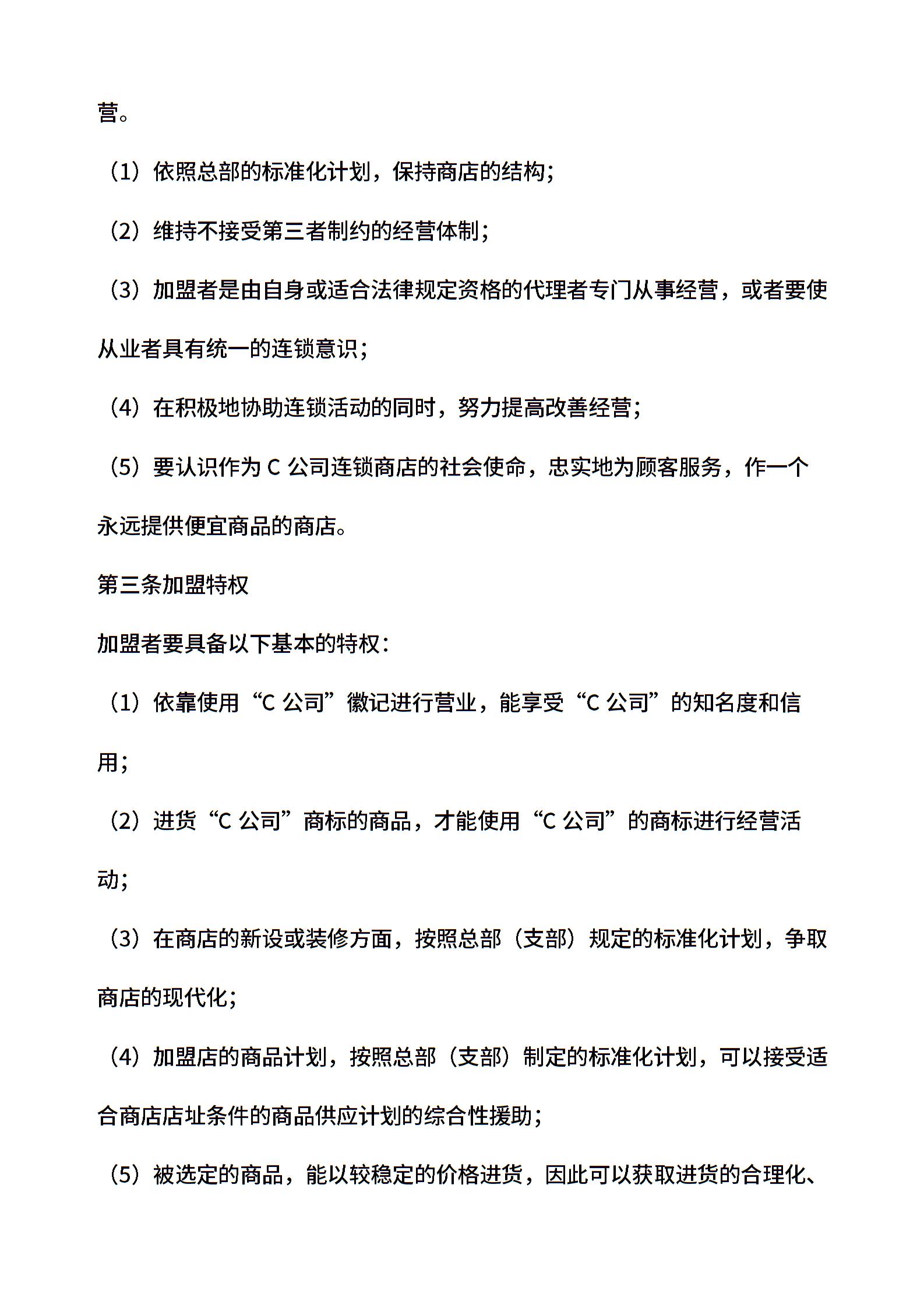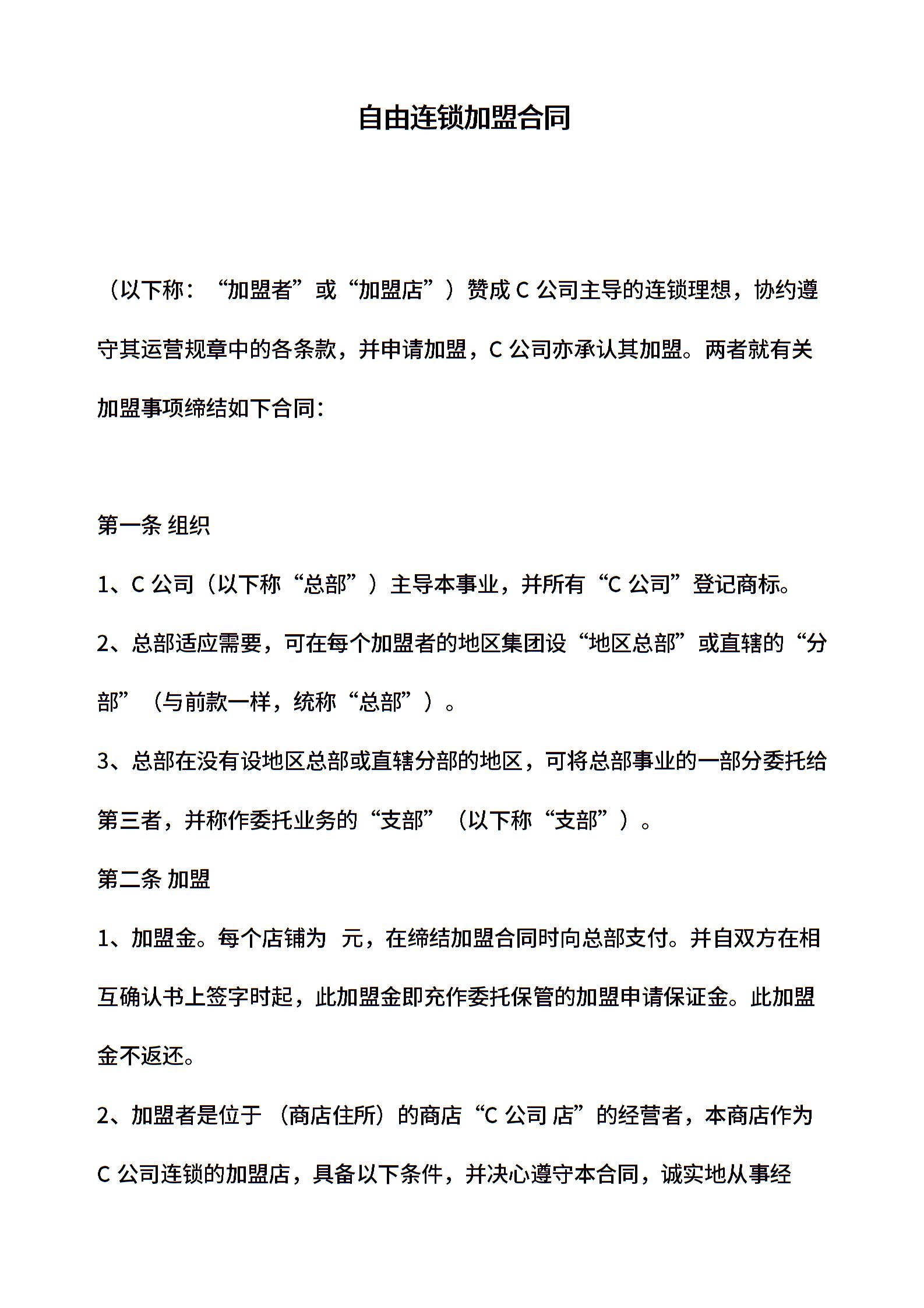 自由连锁加盟合同