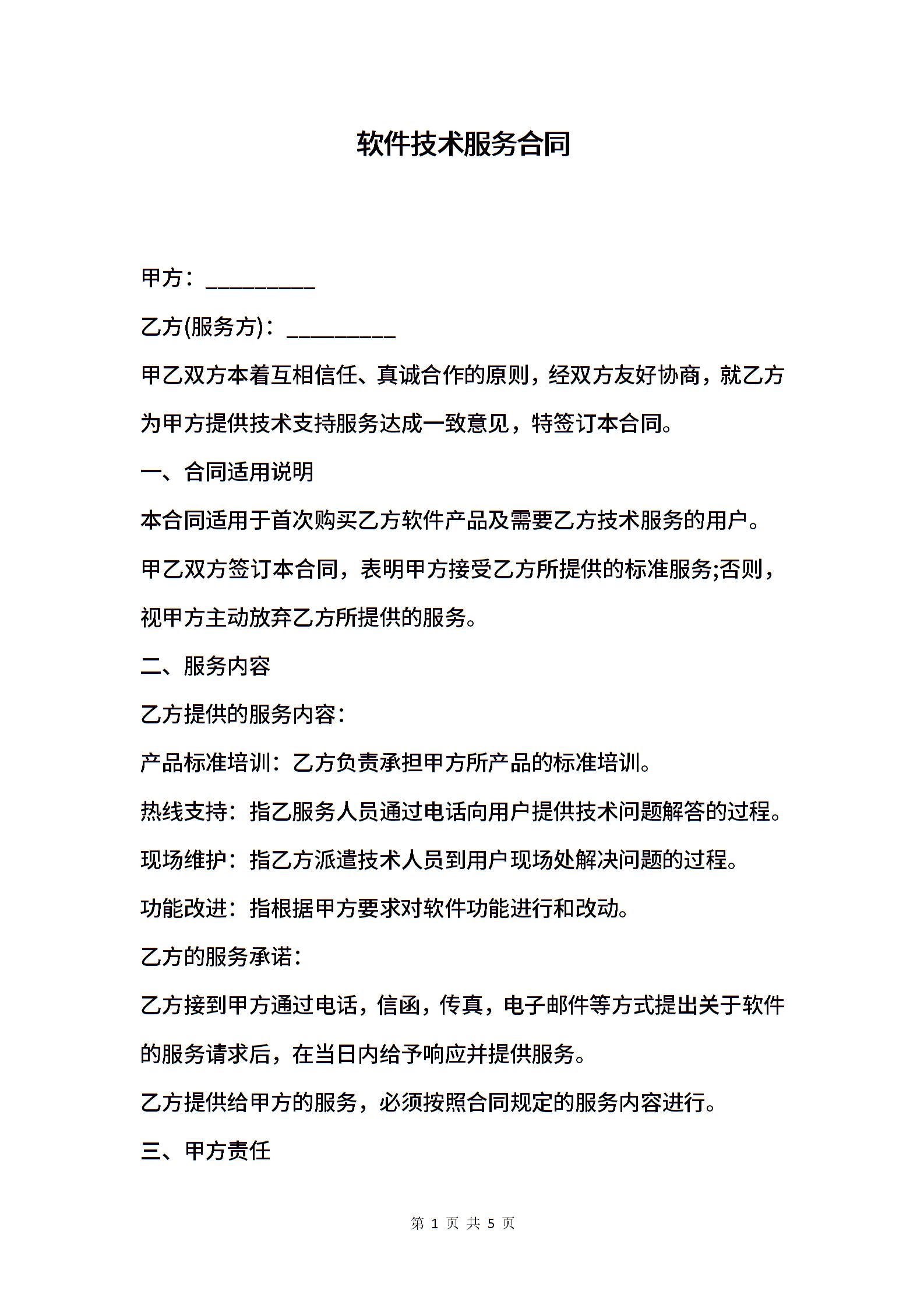 软件技术服务合同下载