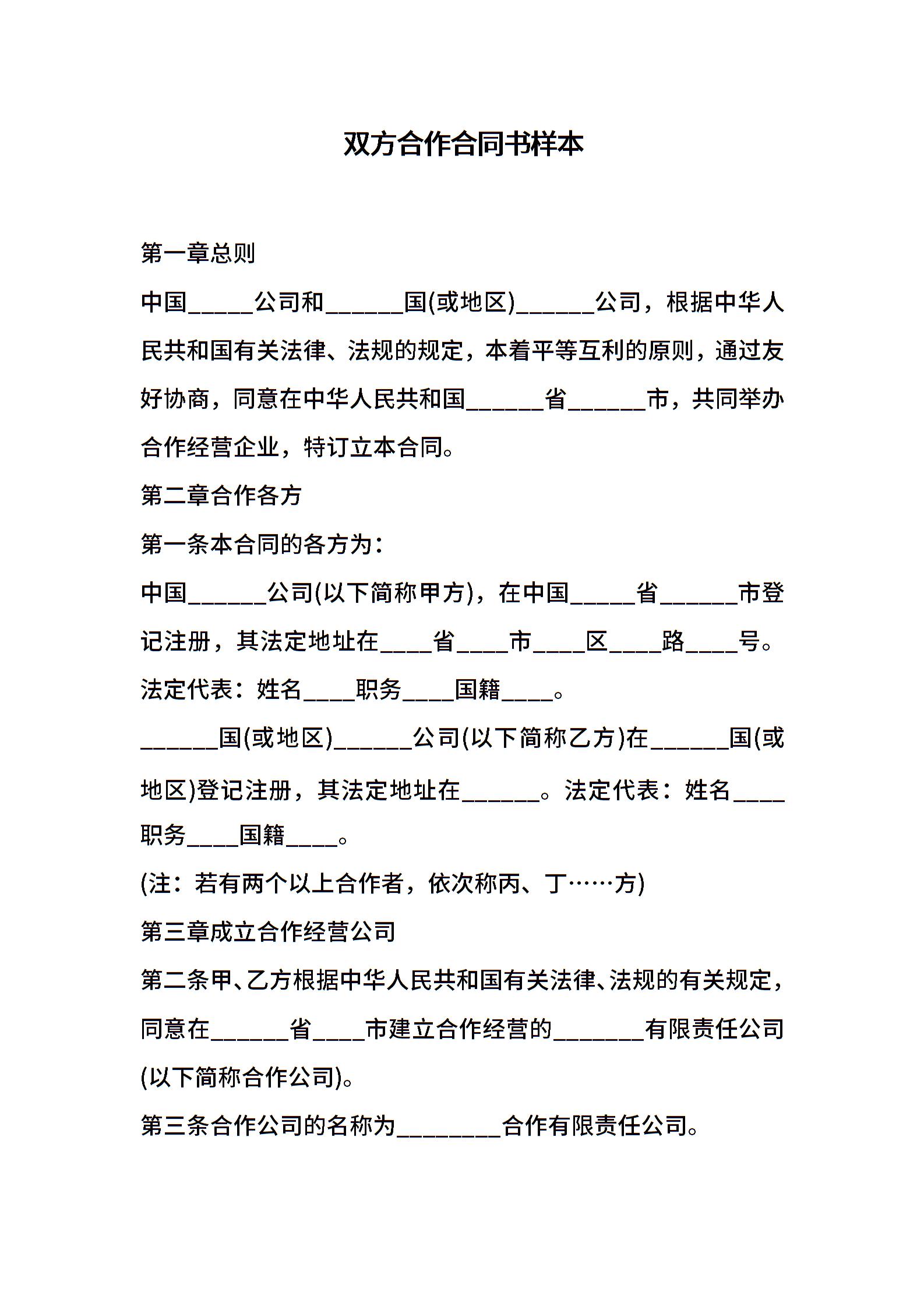 当前位置:量子办公 > 合同模板 > 合作合同 >