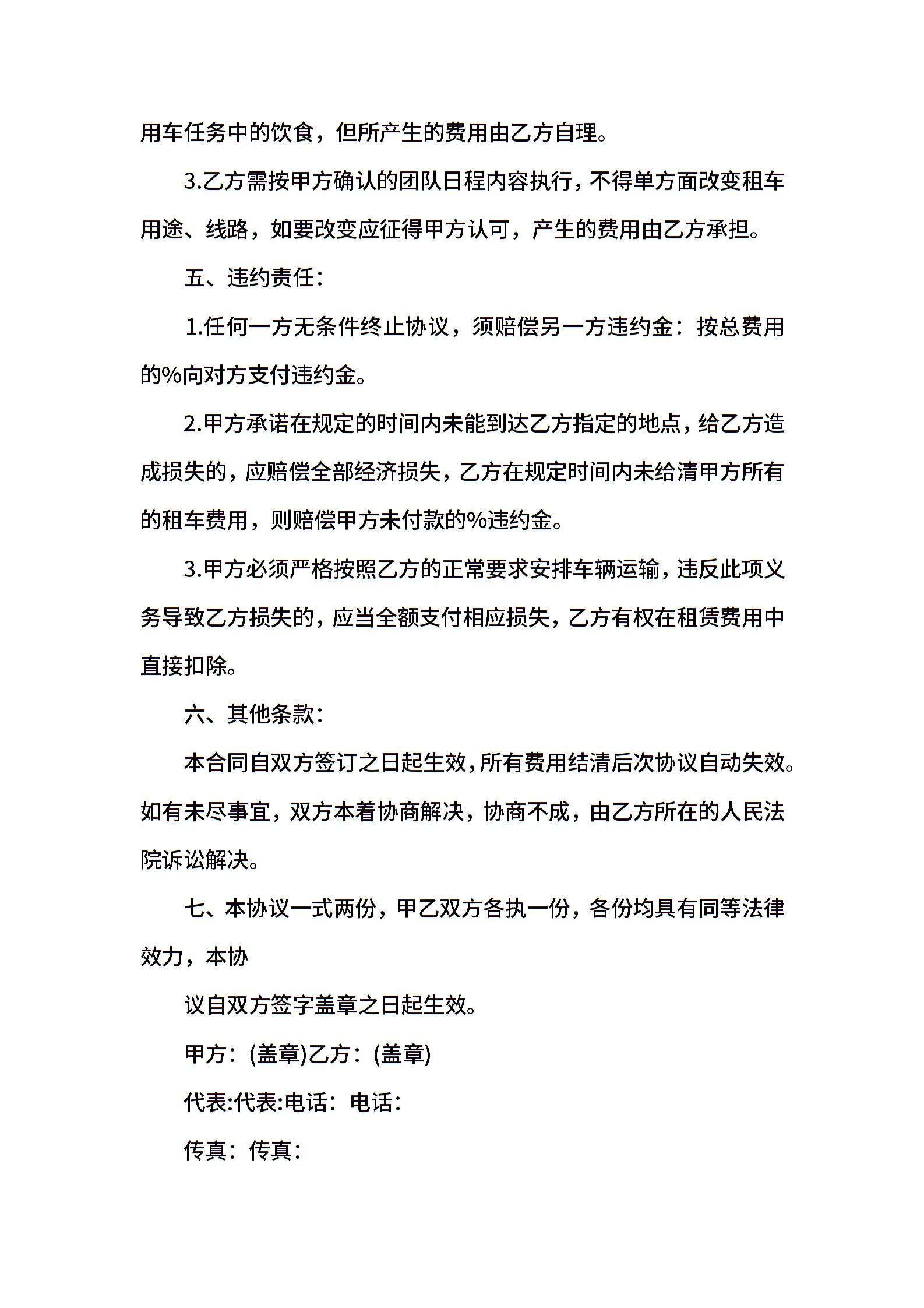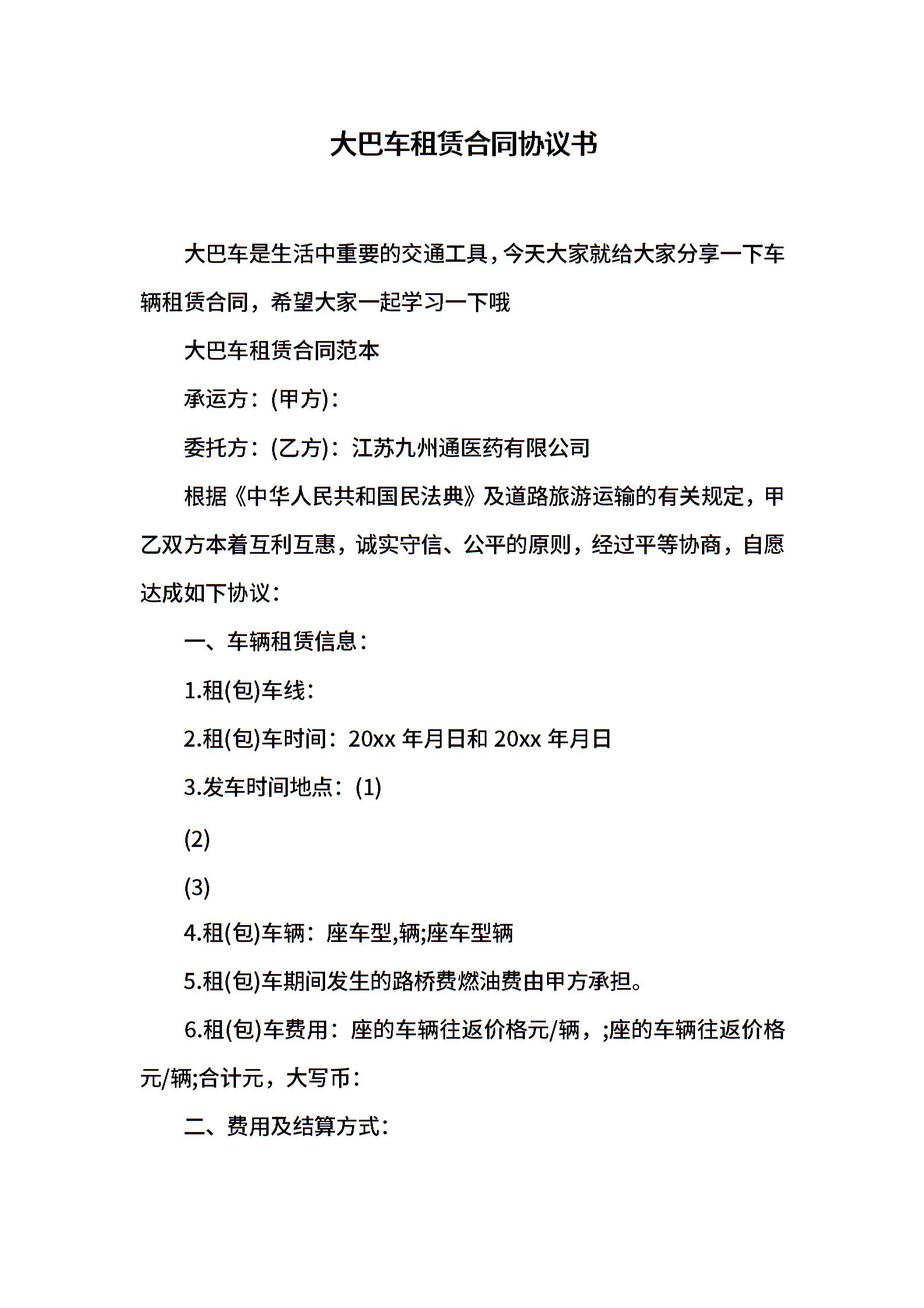大巴车租赁合同协议书
