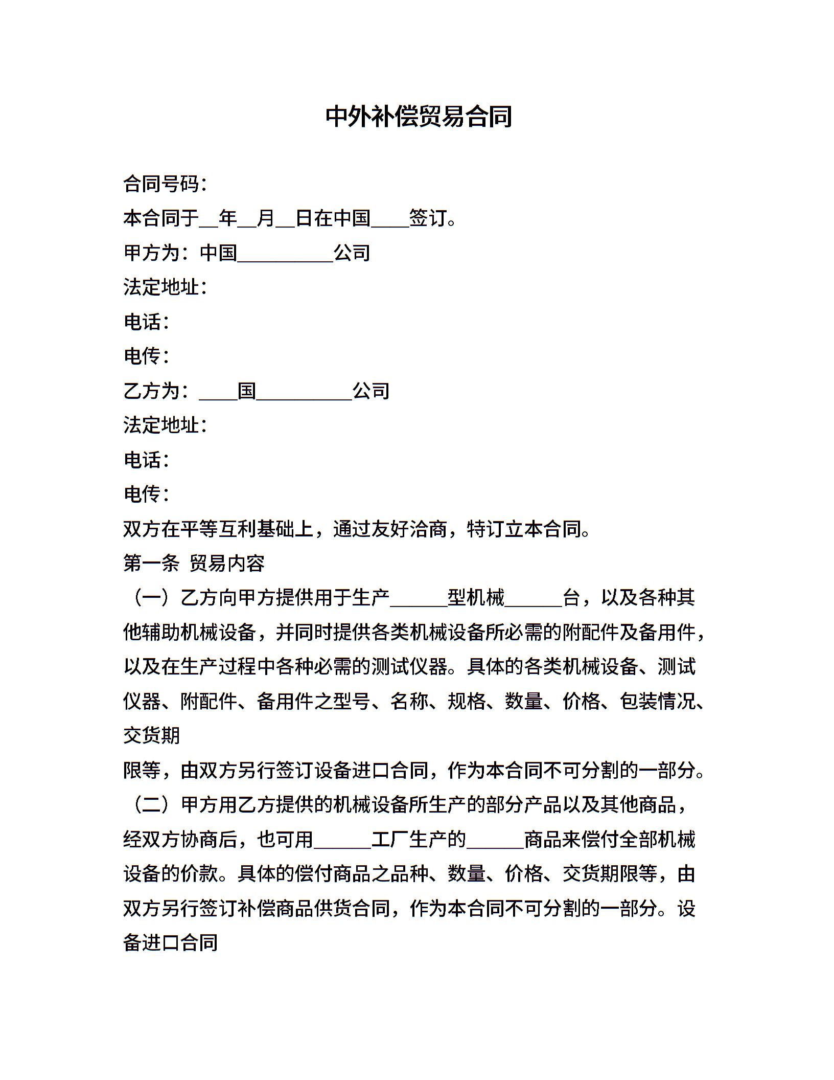 中外补偿贸易合同