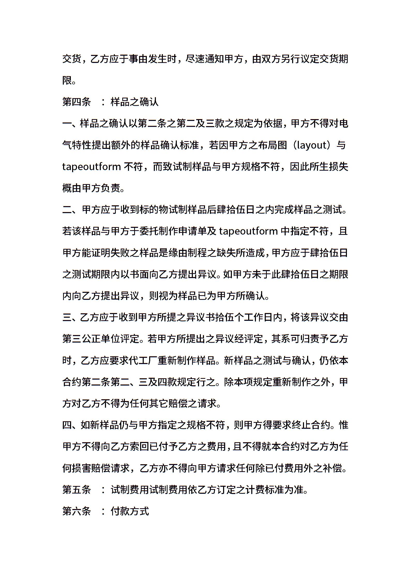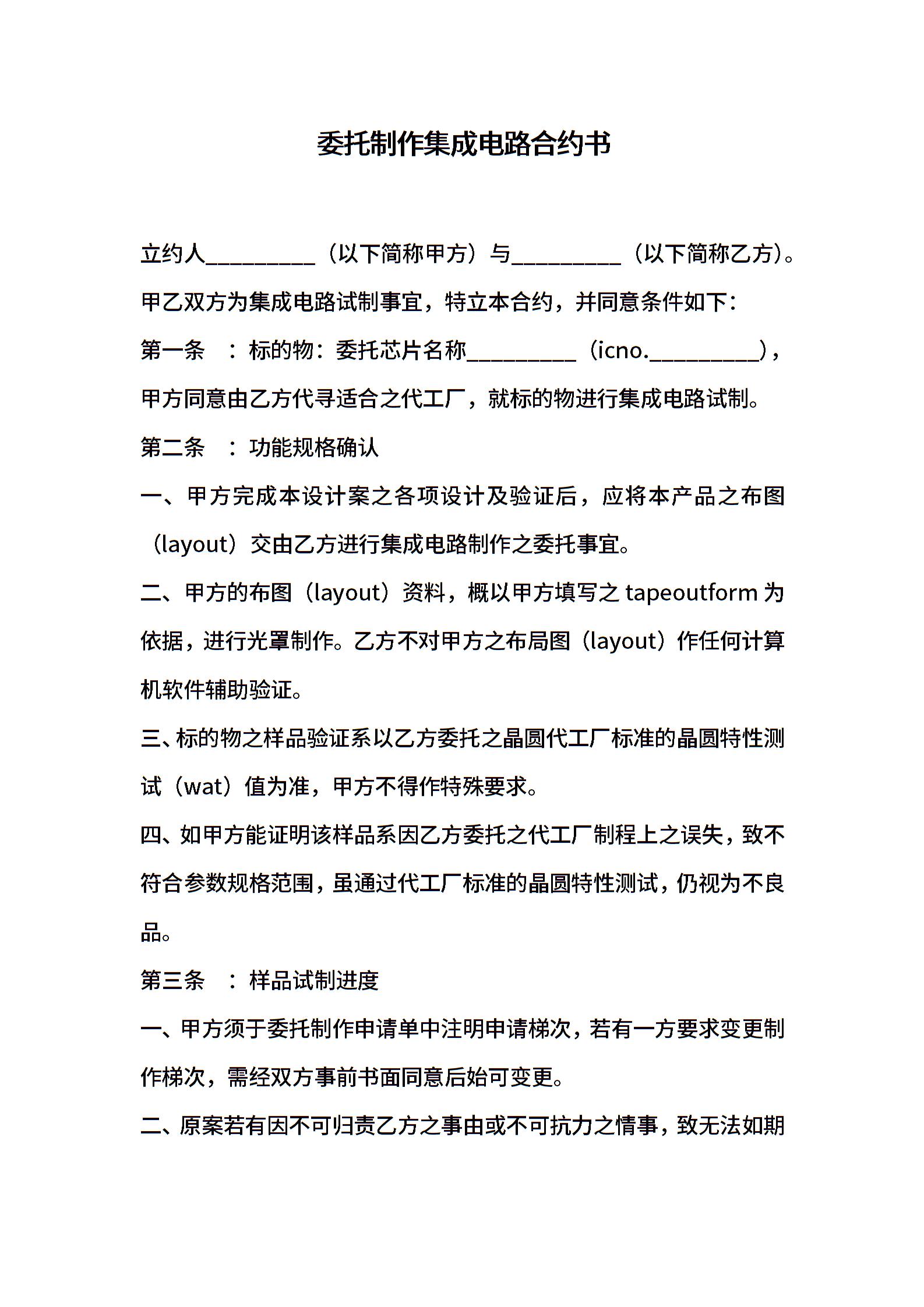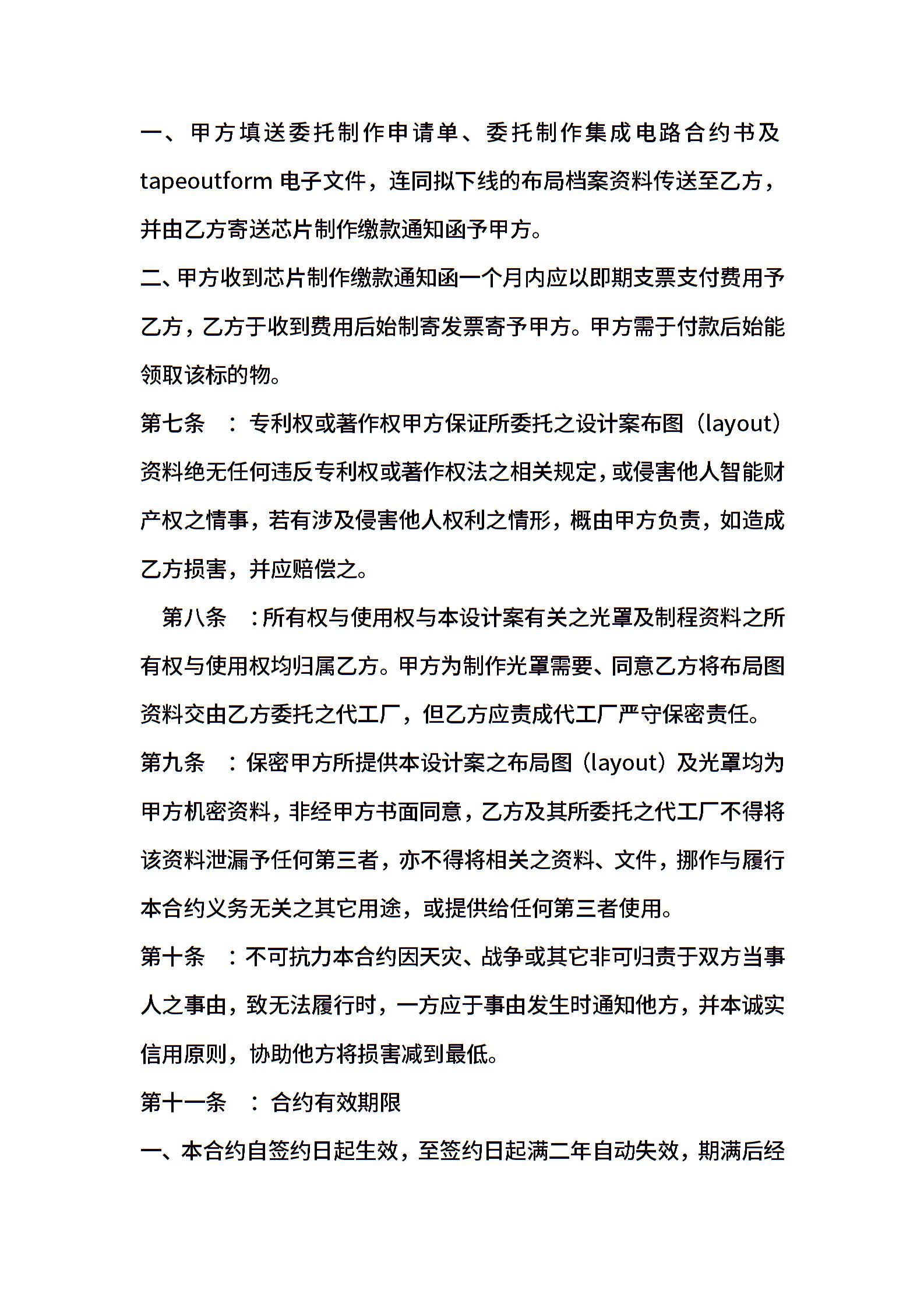 委托制作集成电路合约书
