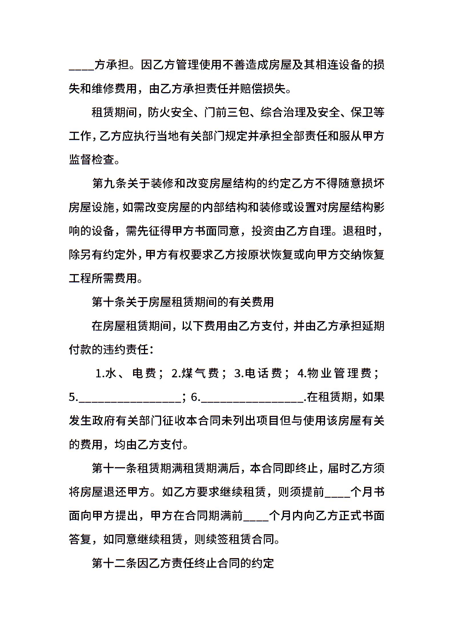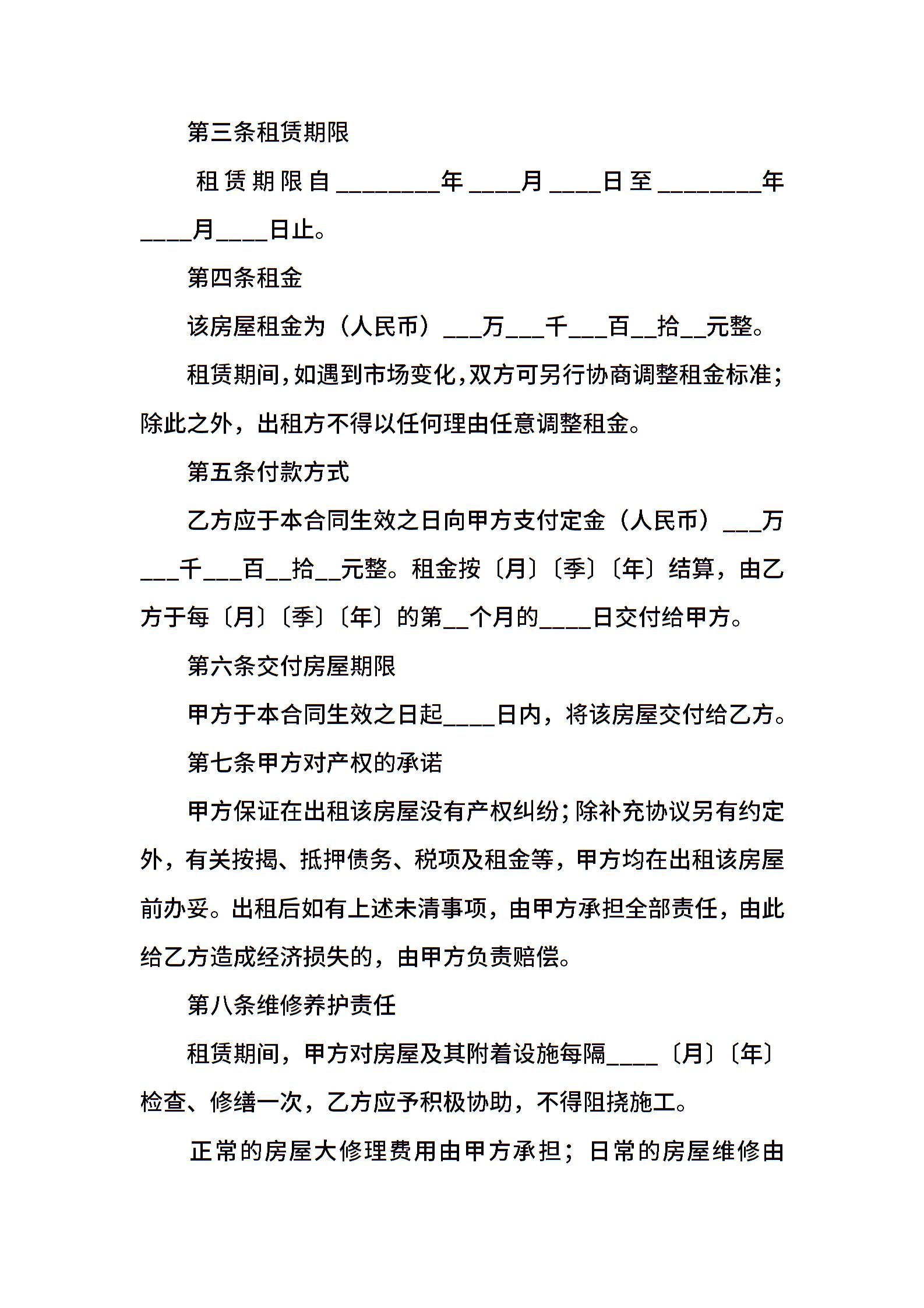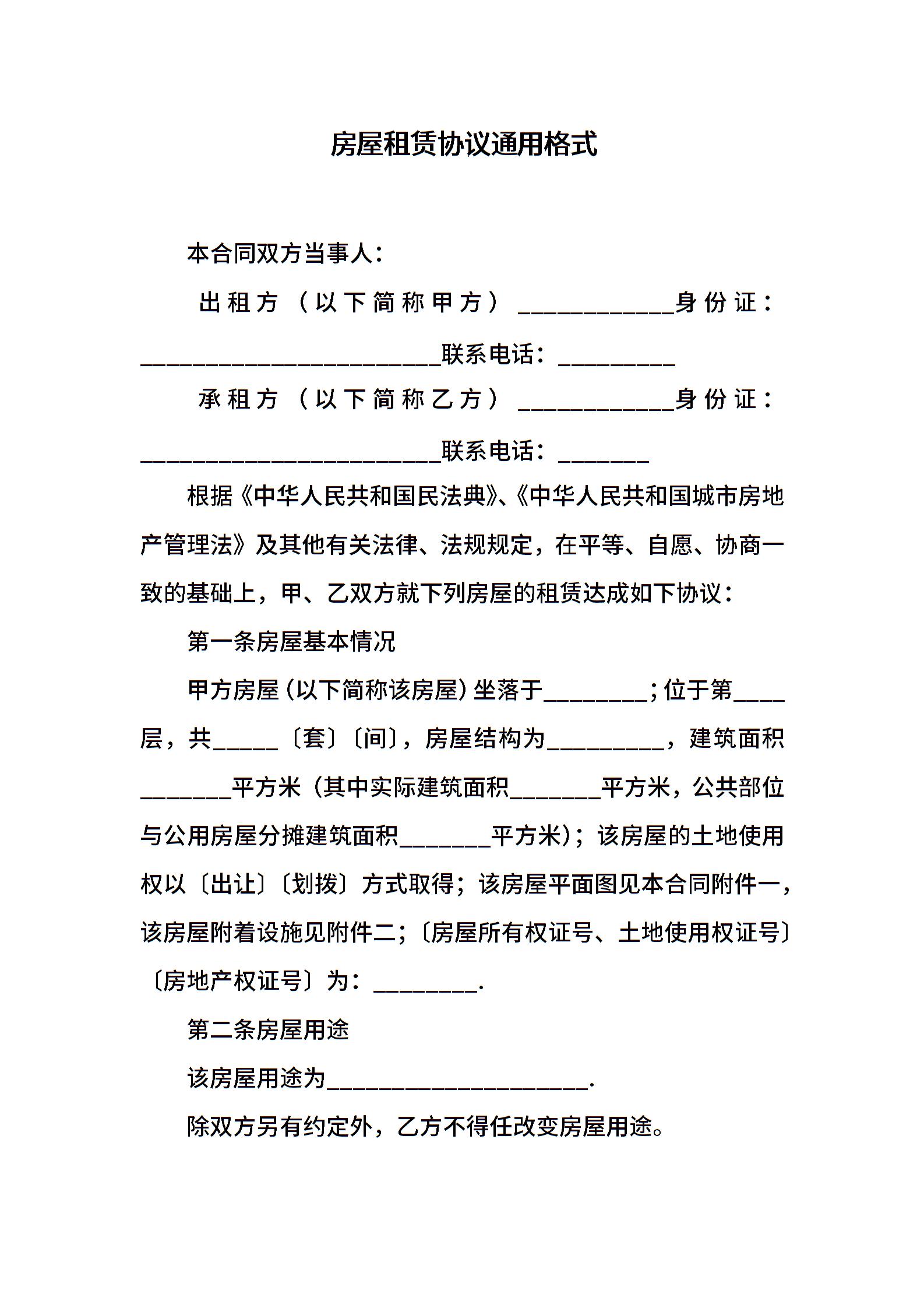 房屋租赁协议通用格式
