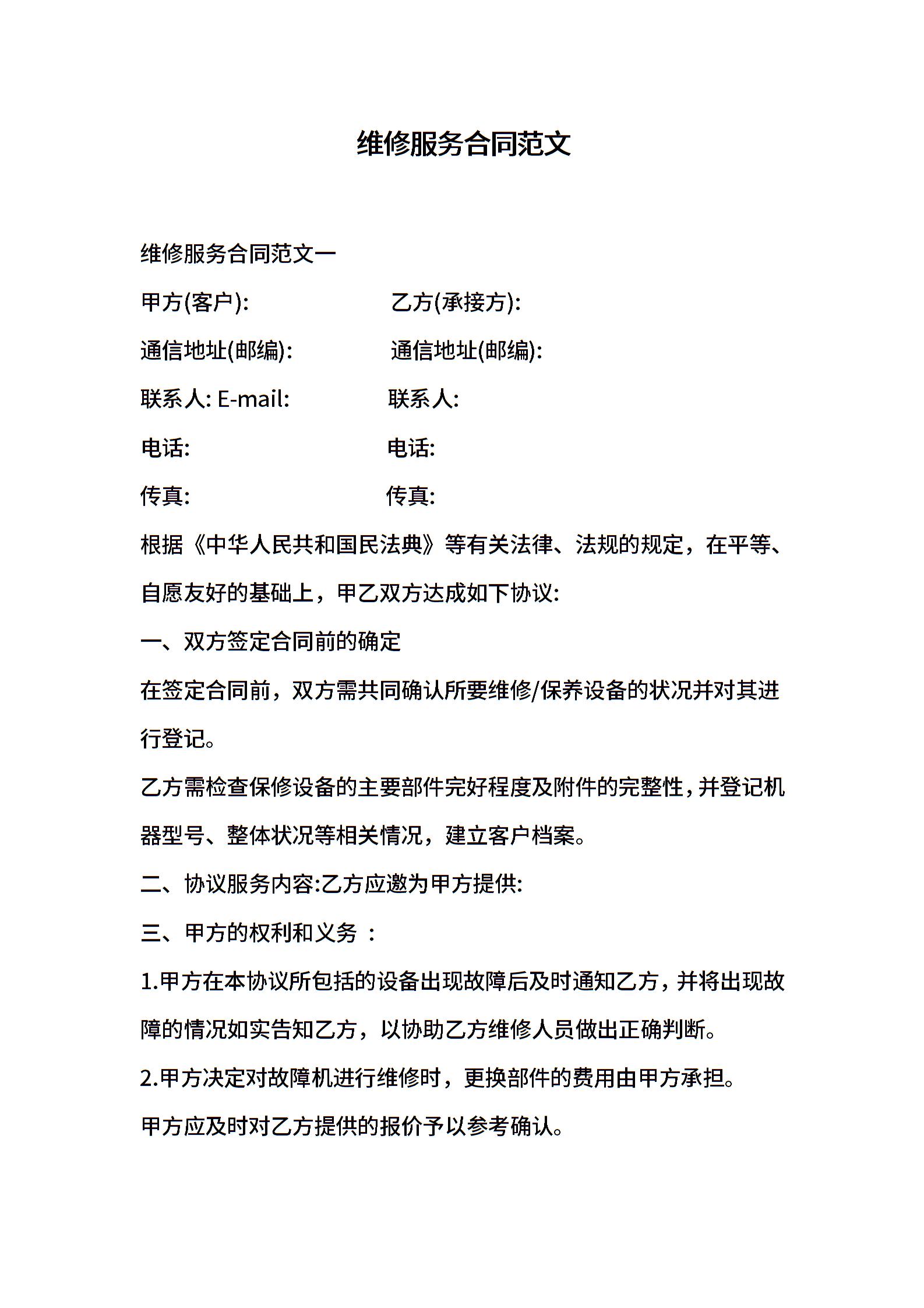 维修服务合同范文