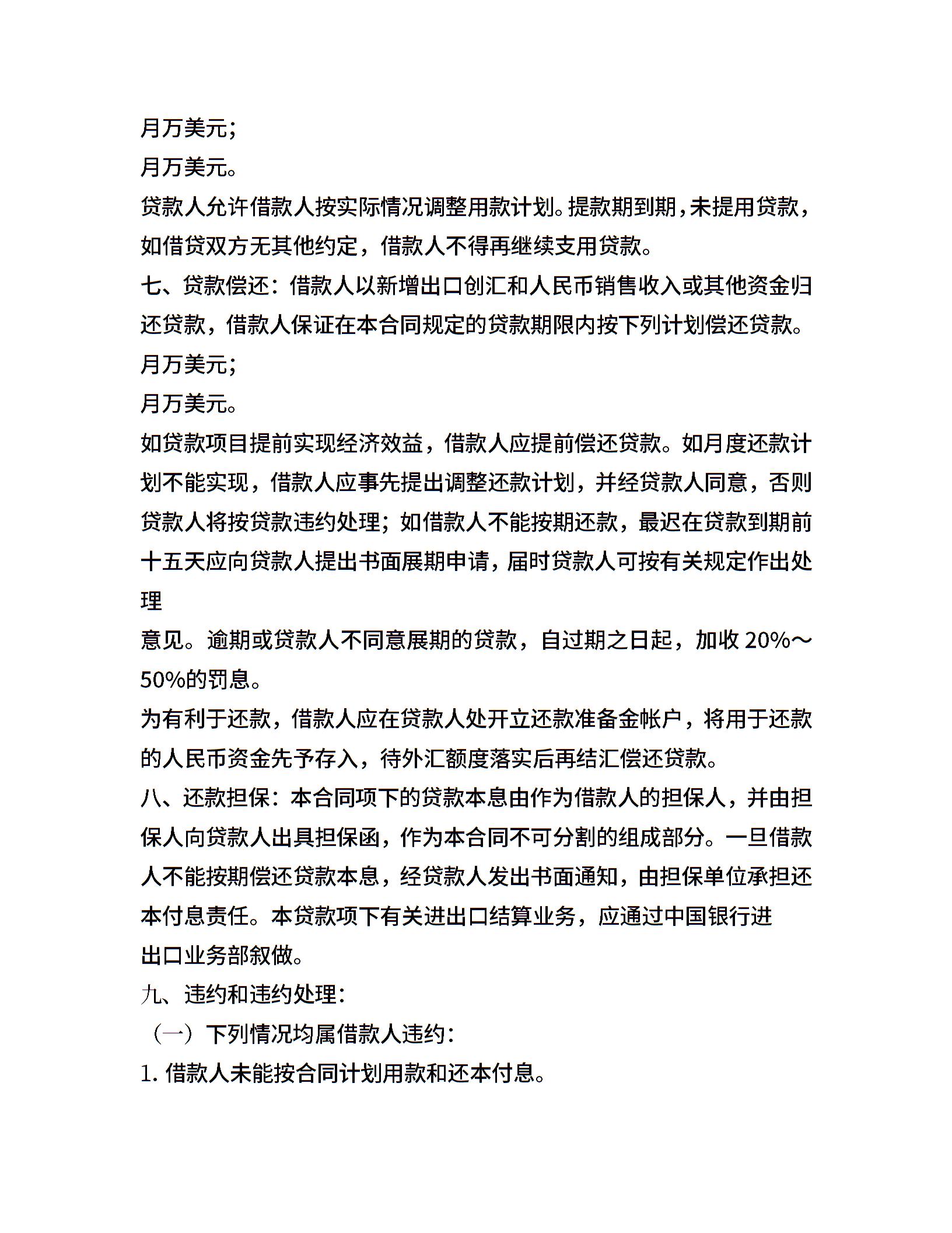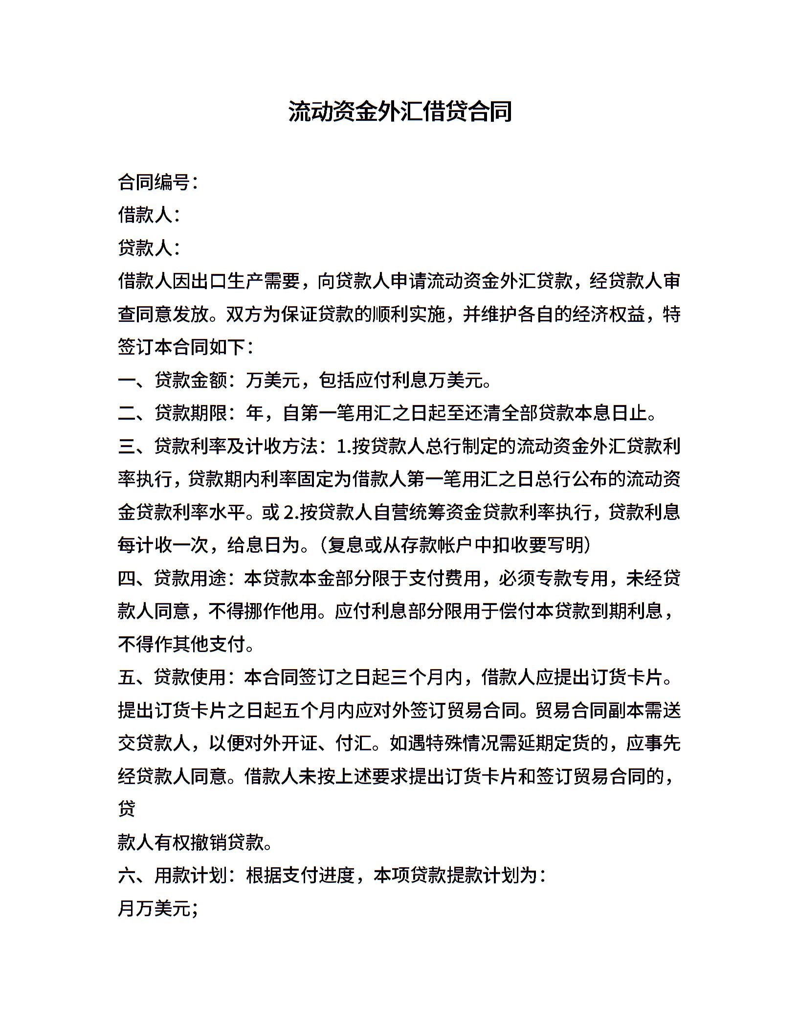 流动资金外汇借贷合同