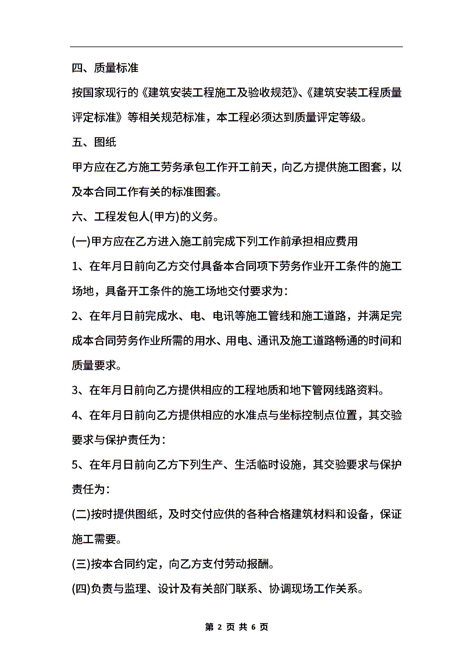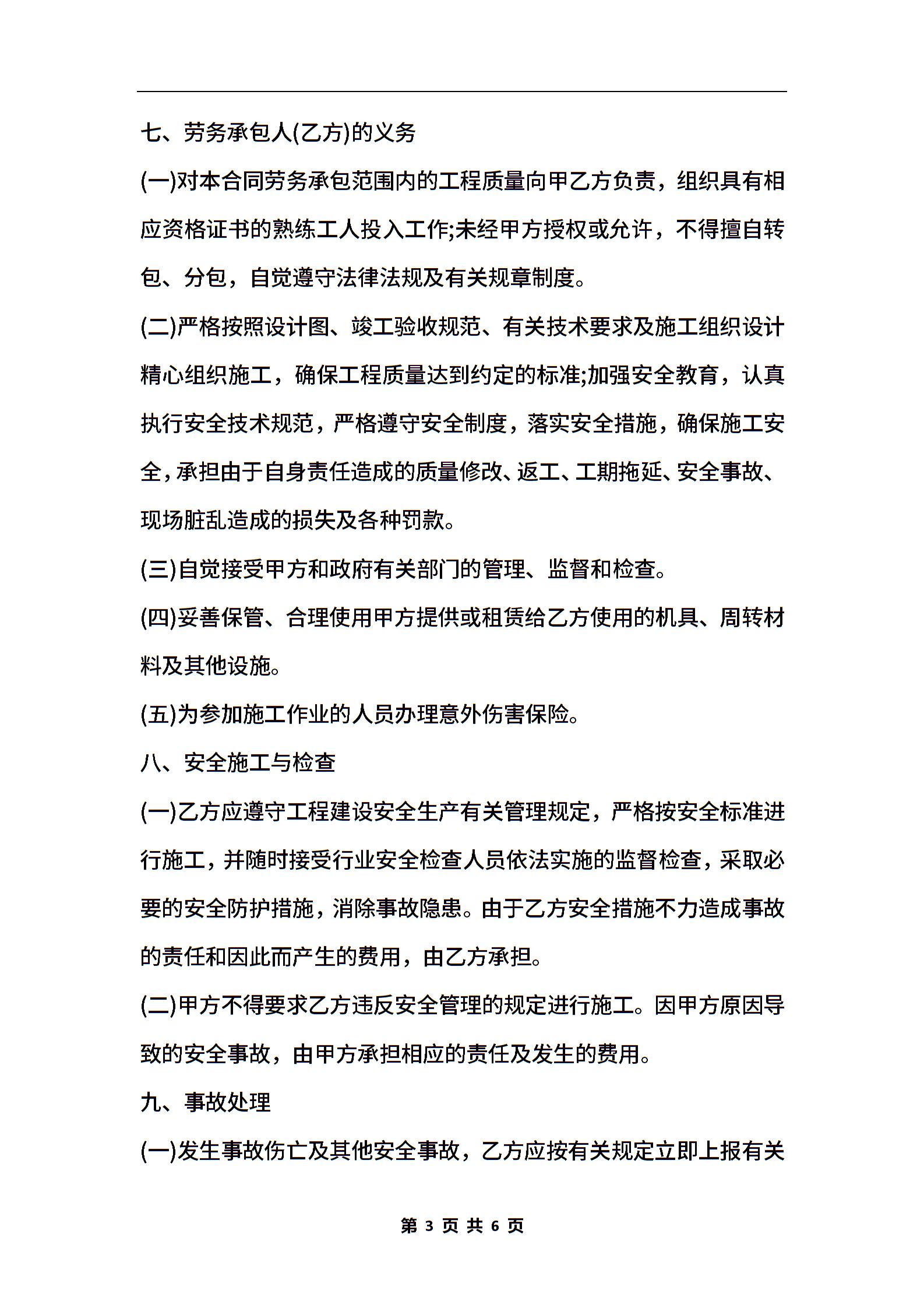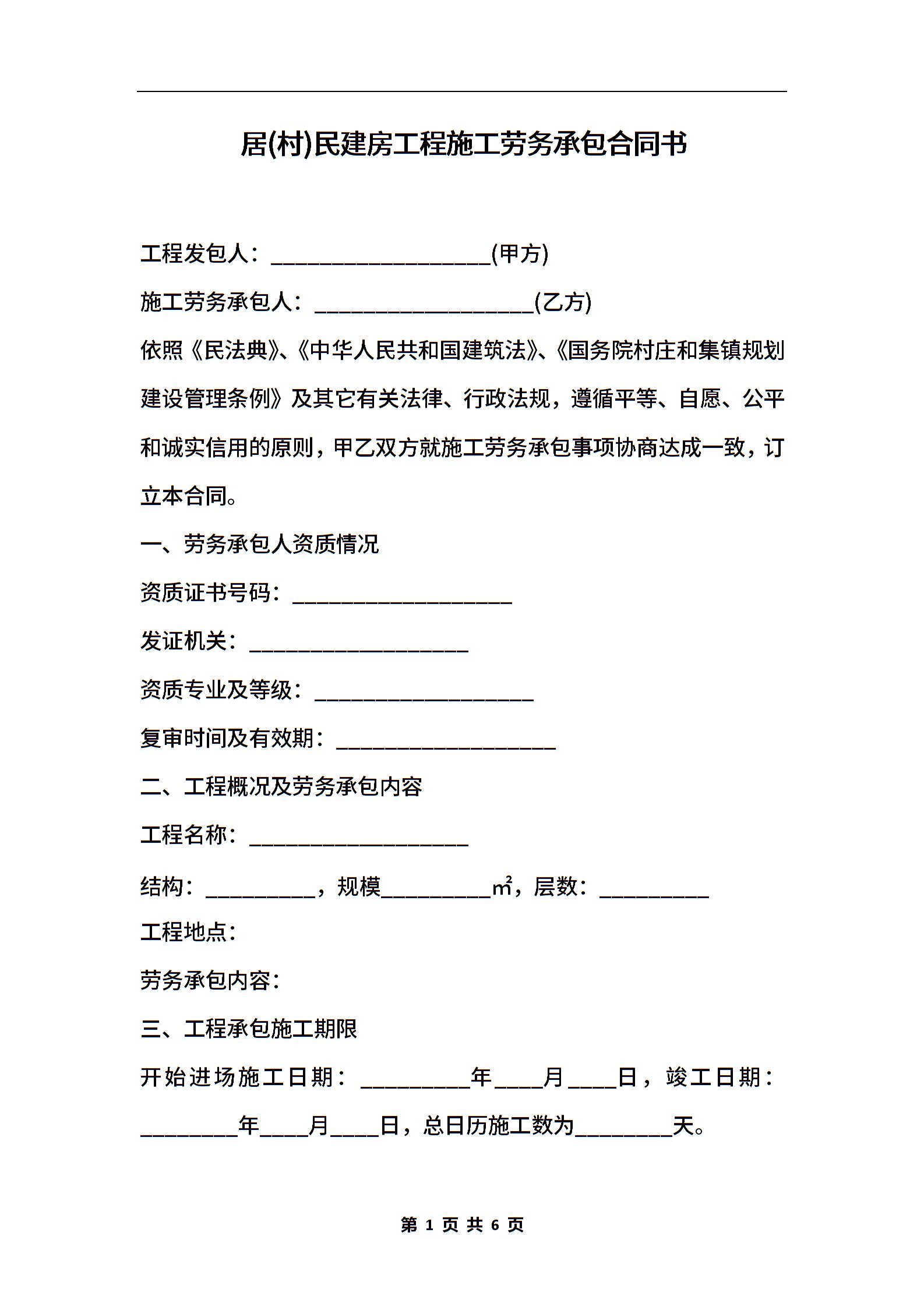 居(村)民建房工程施工劳务承包合同书