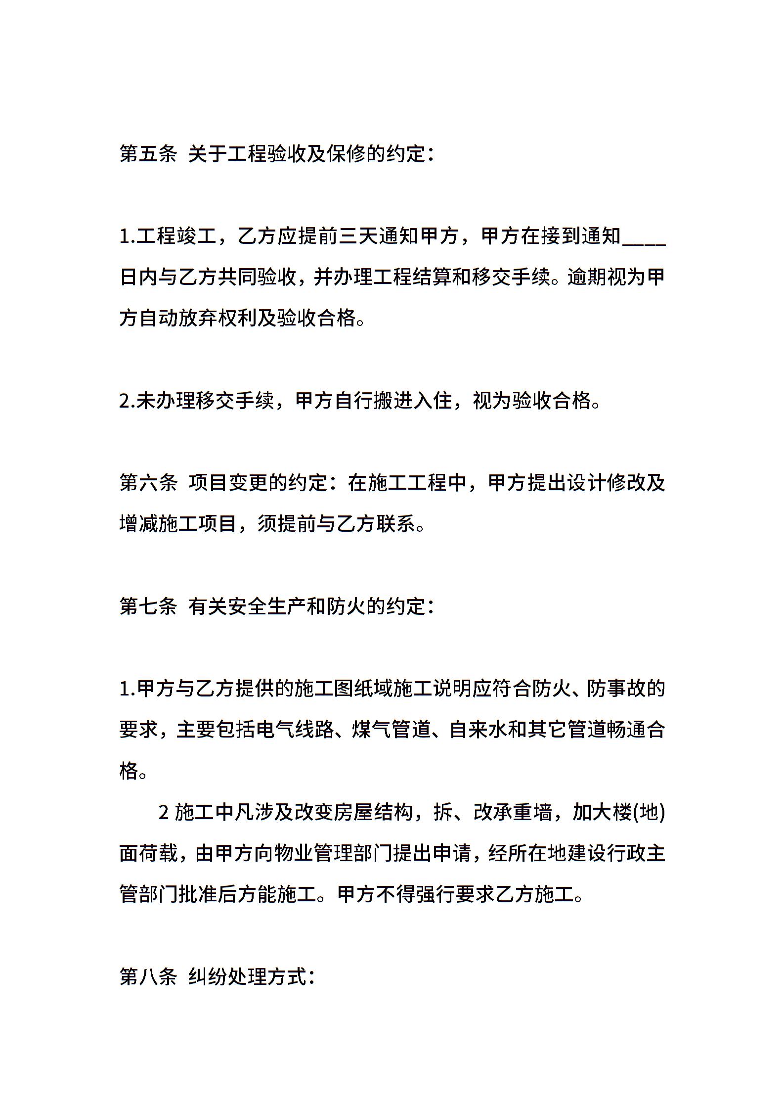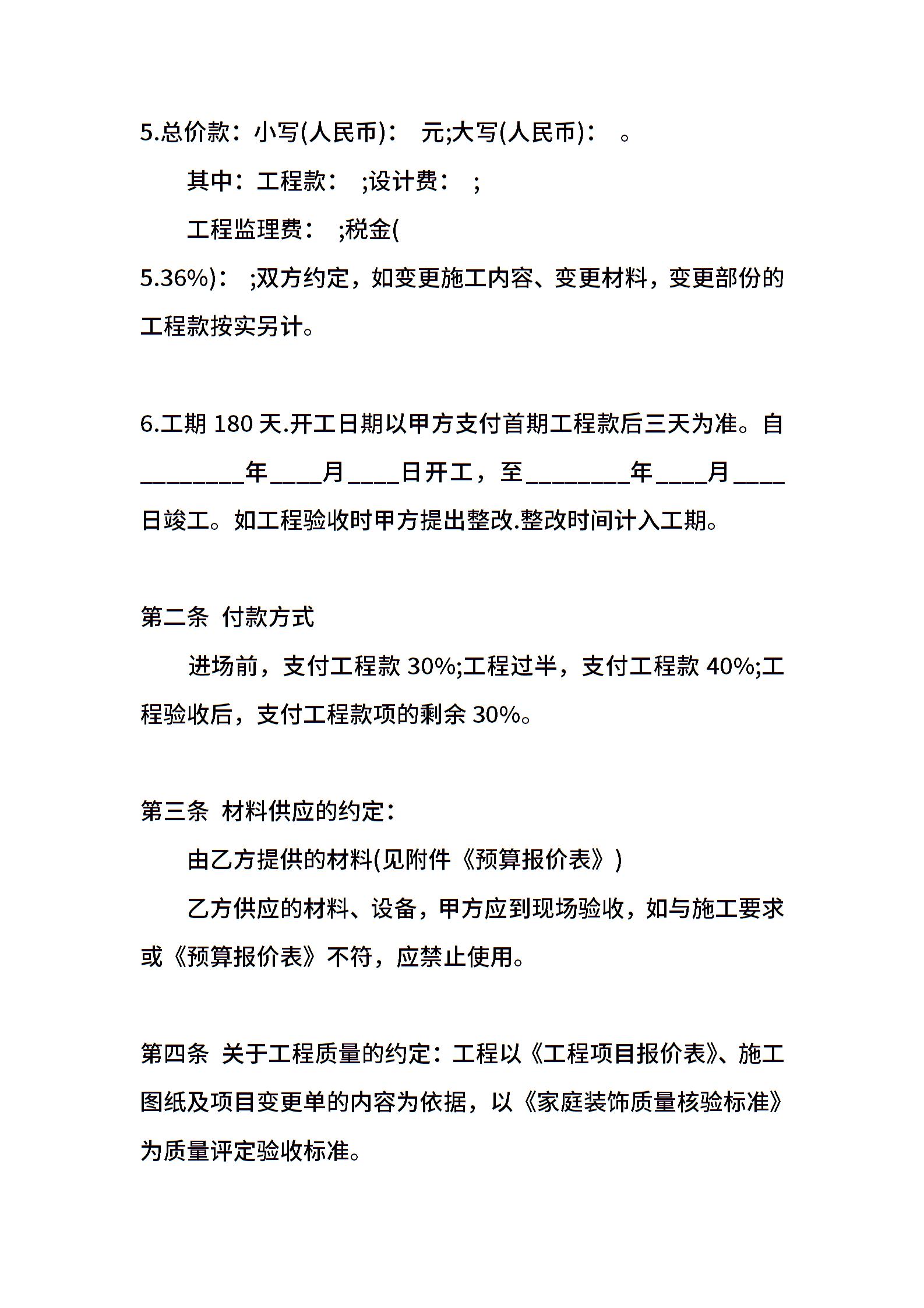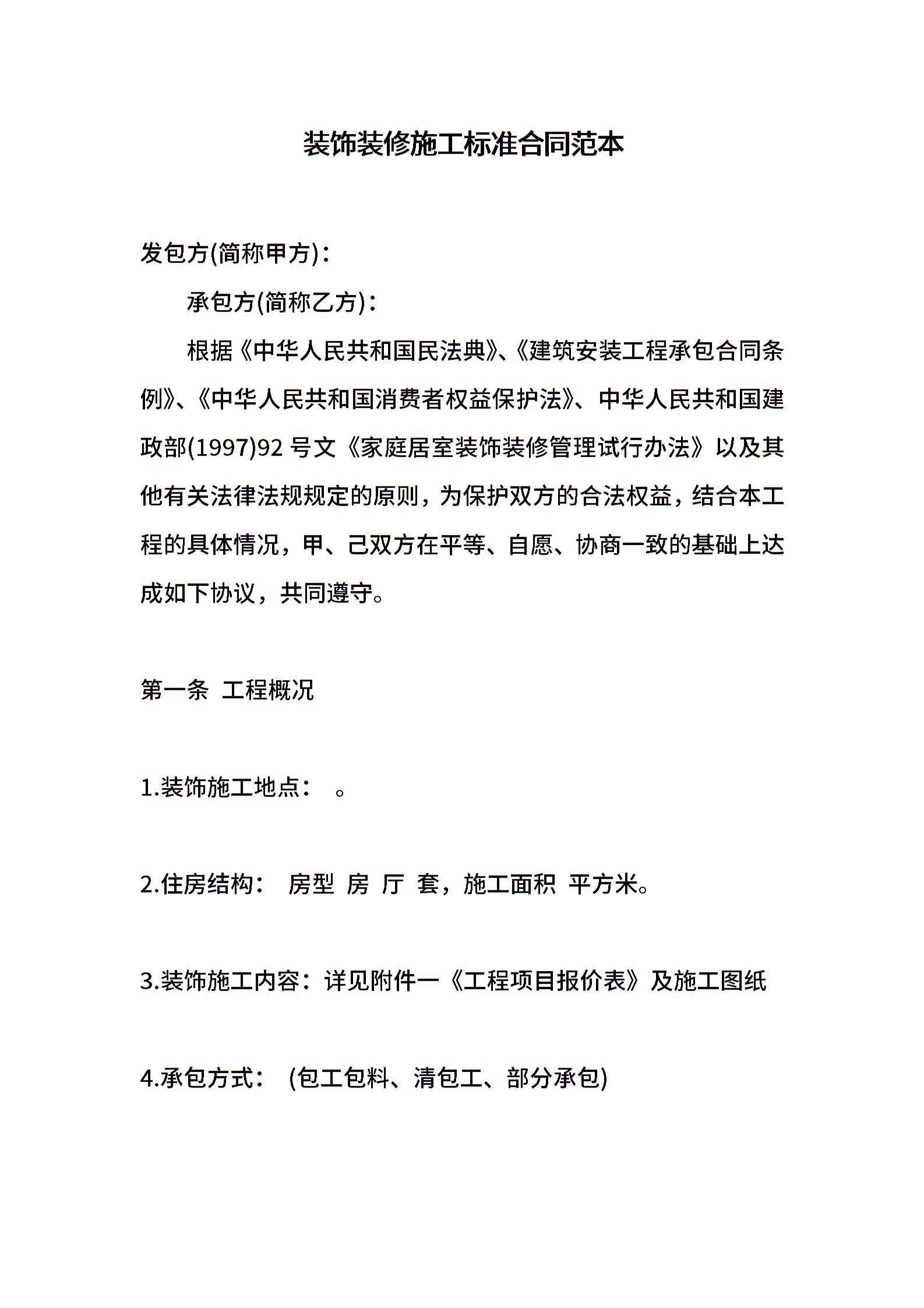 装饰装修施工标准合同范本