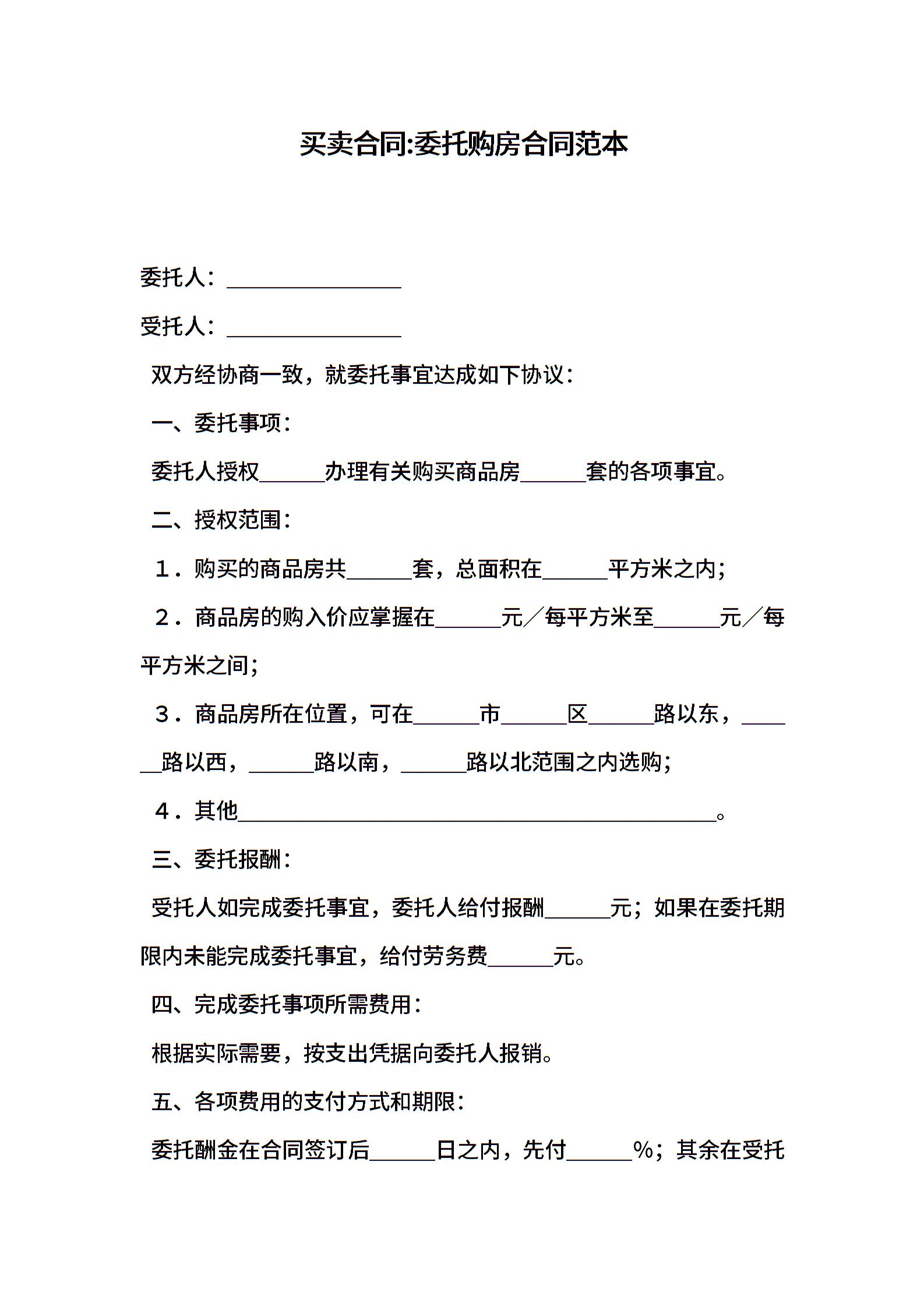 买卖合同-委托购房合同范本