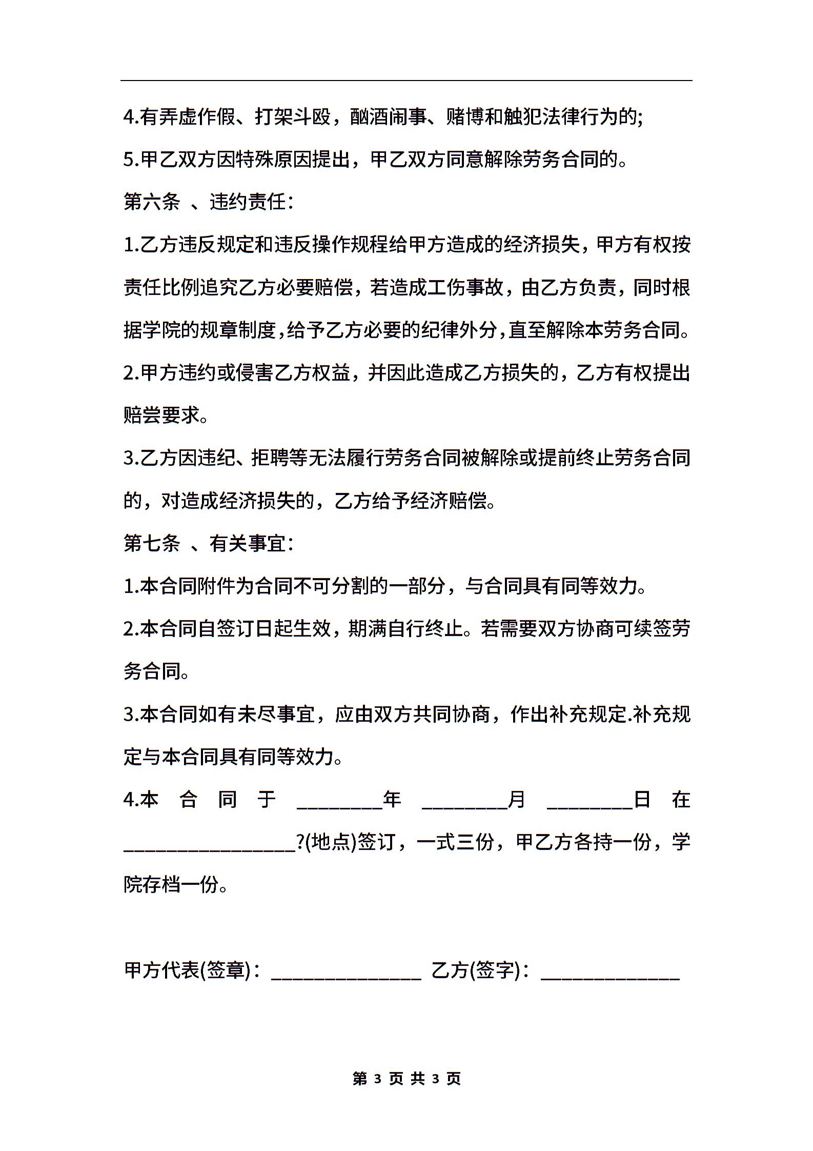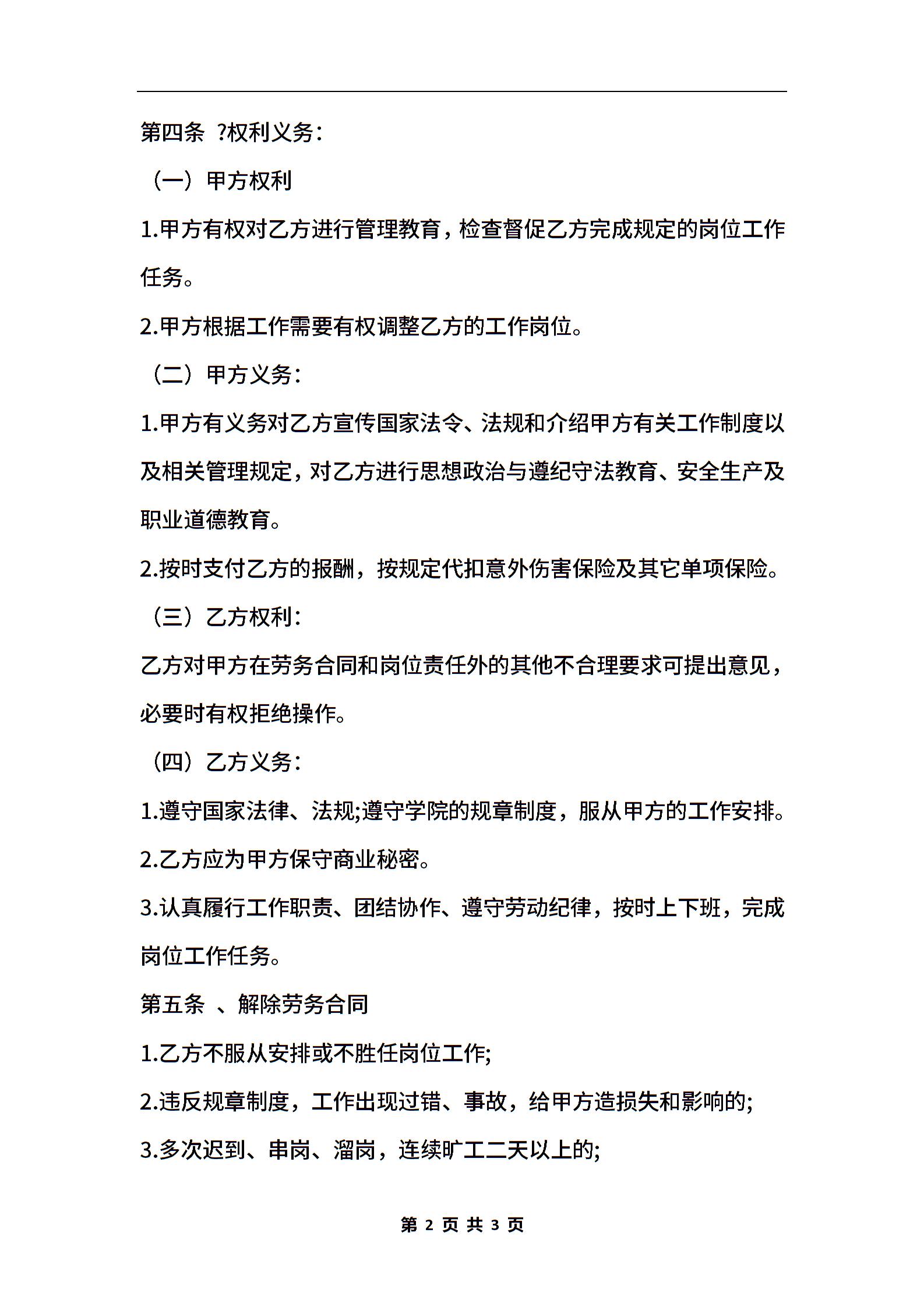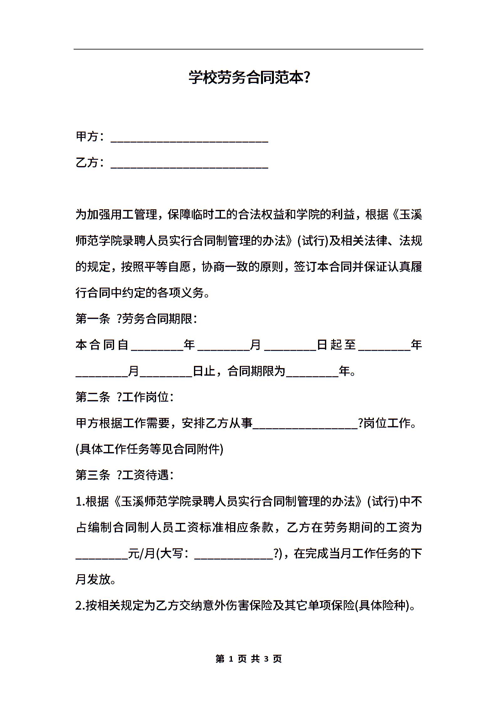 学校劳务合同范本-