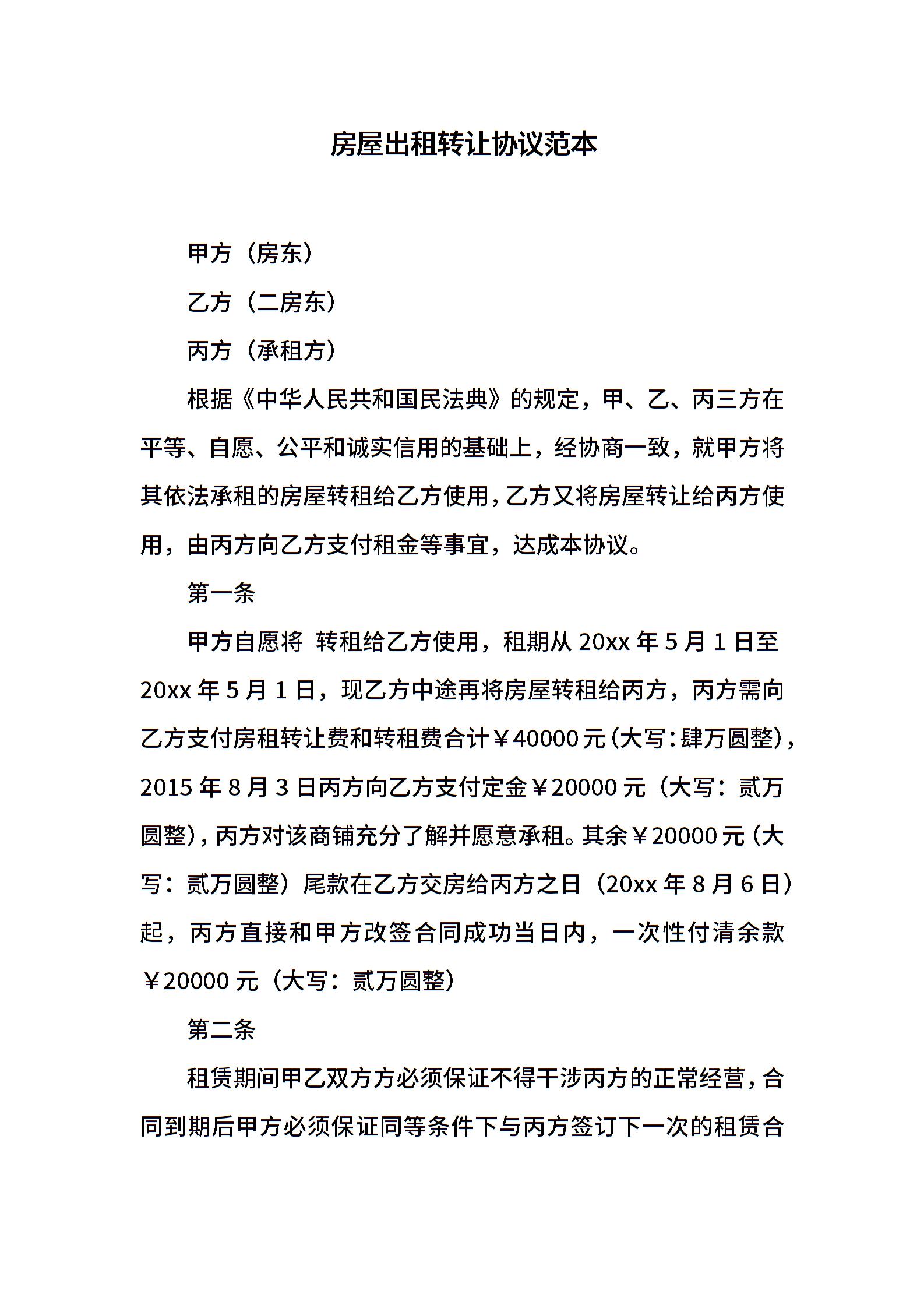 房屋出租转让协议范本