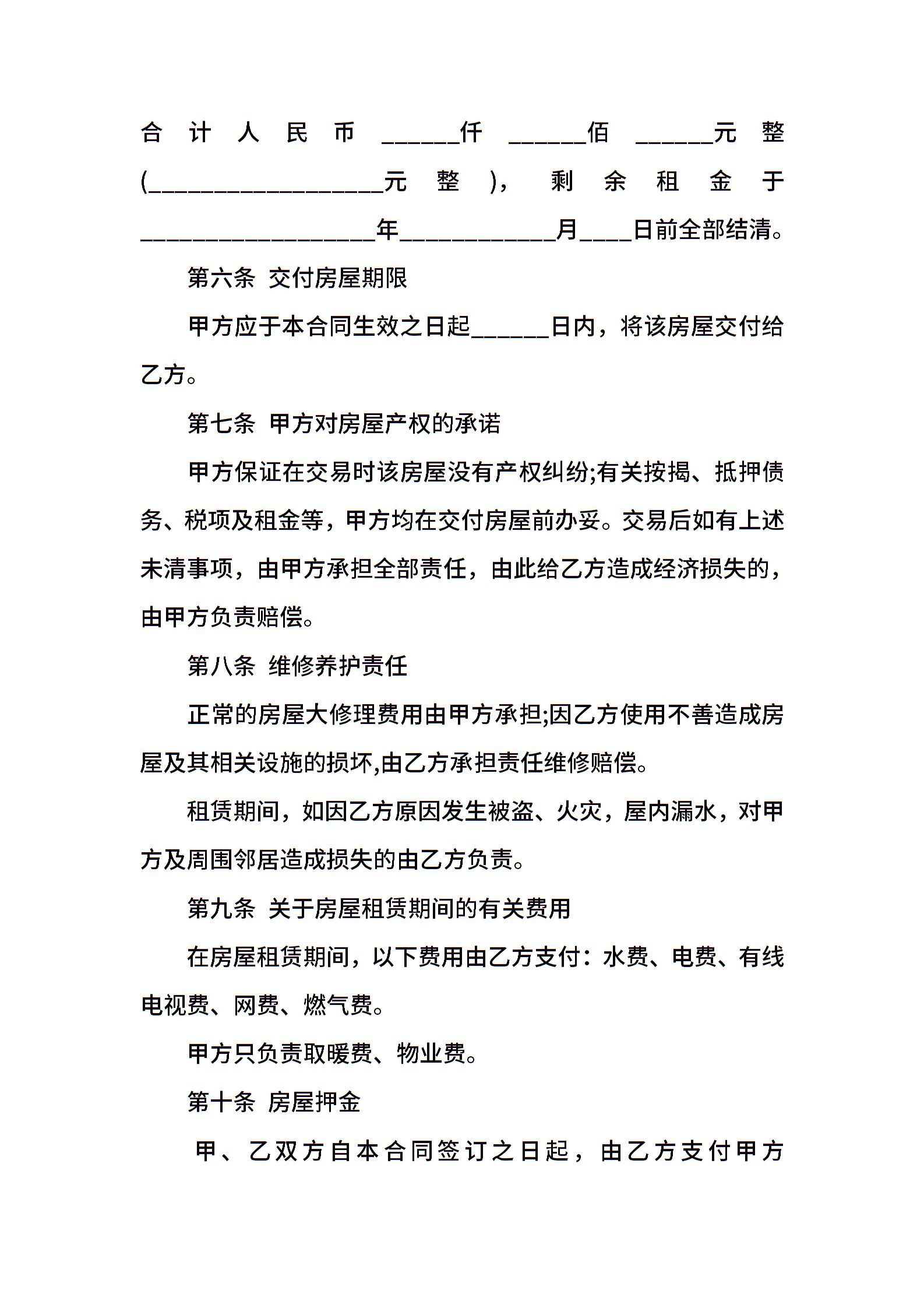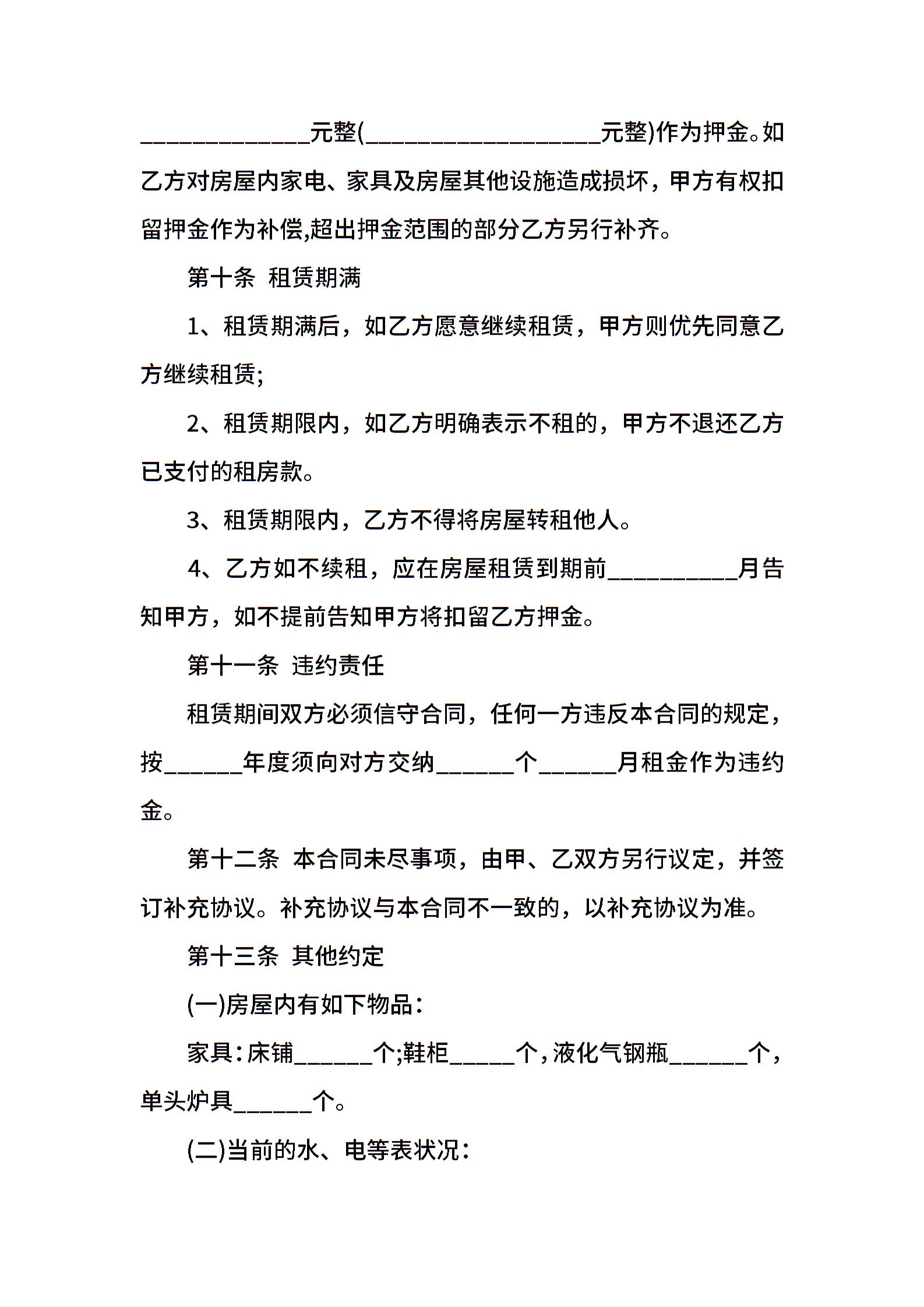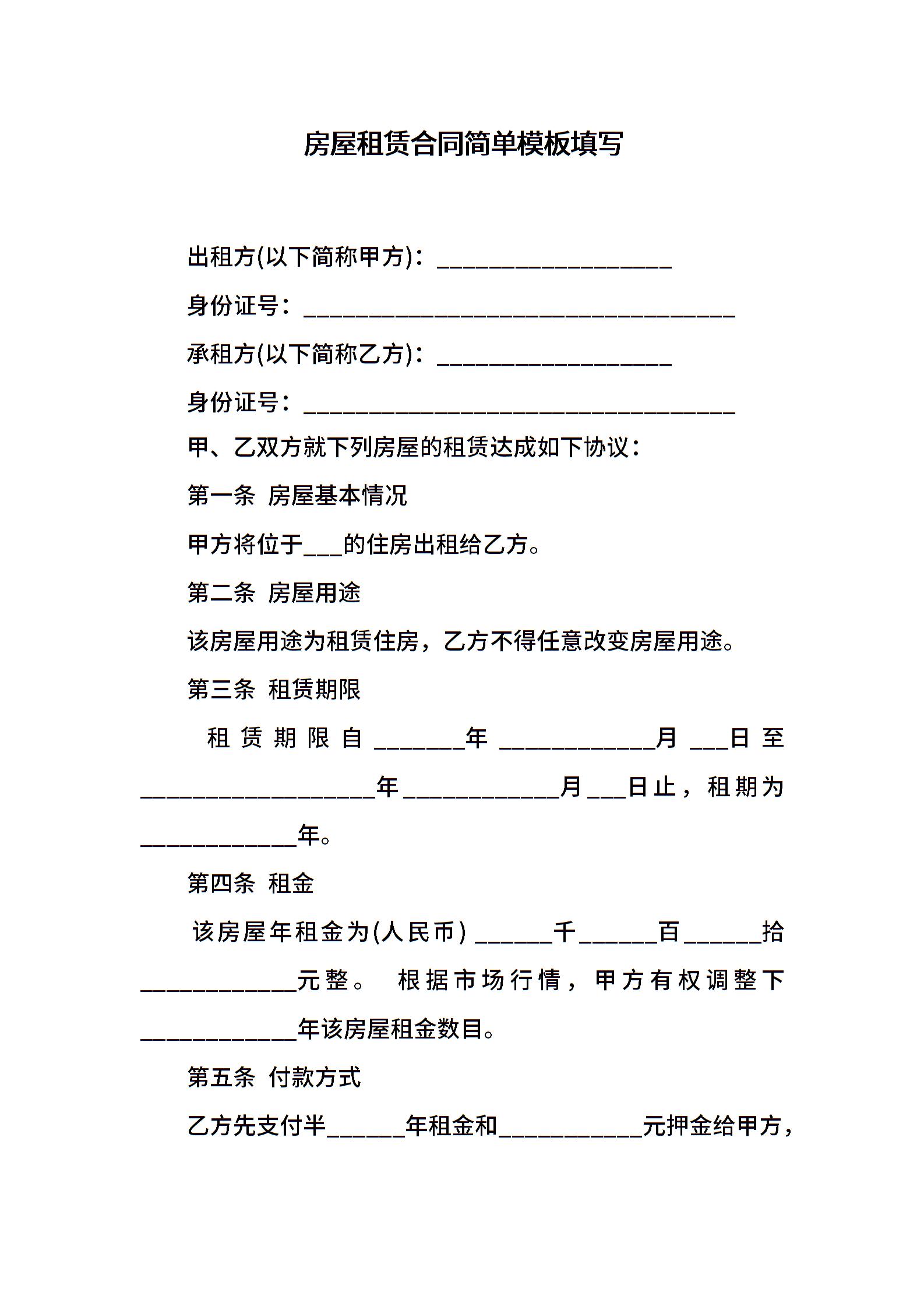 房屋租赁合同简单模板填写