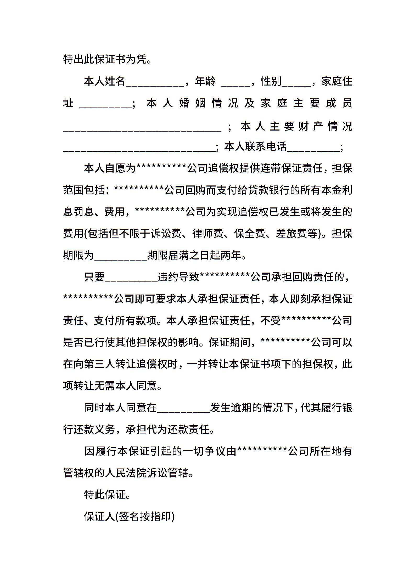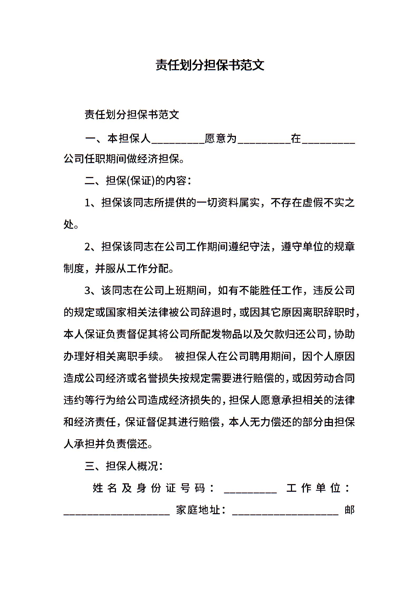 责任划分担保书范文