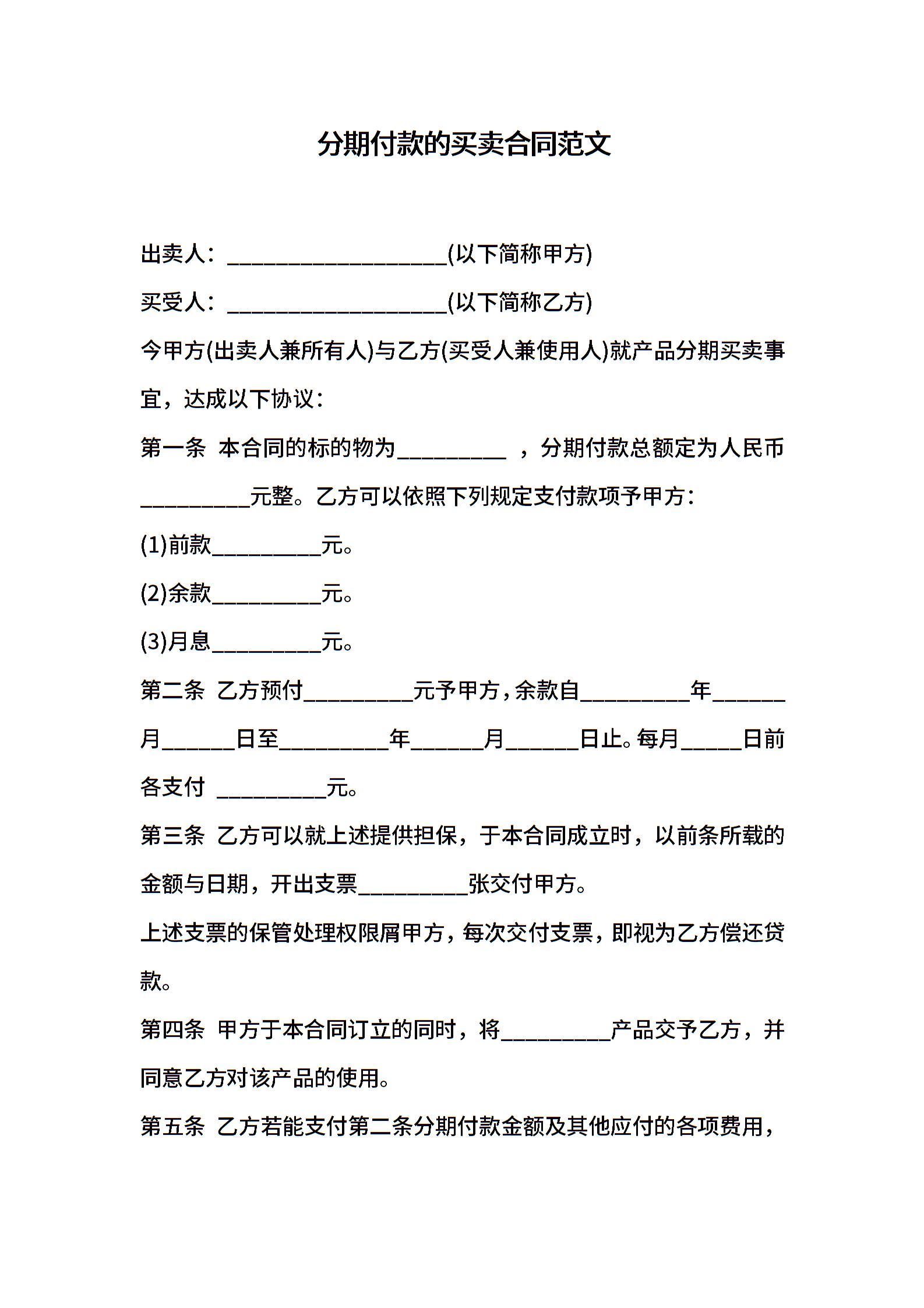 分期付款的买卖合同范文