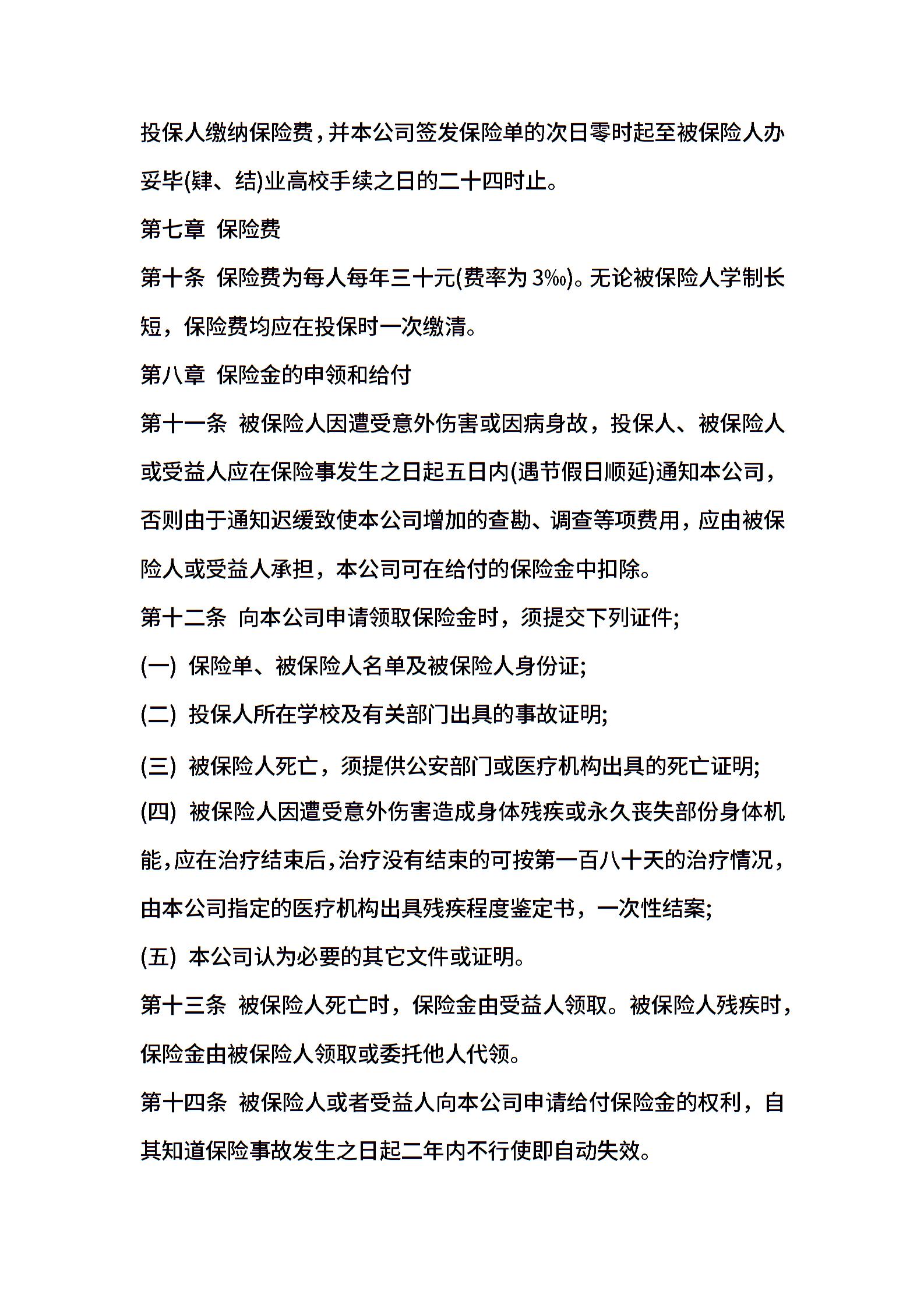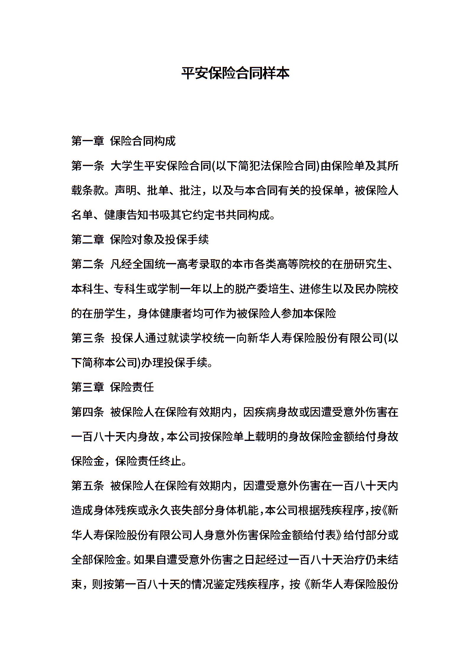 平安保险合同样本
